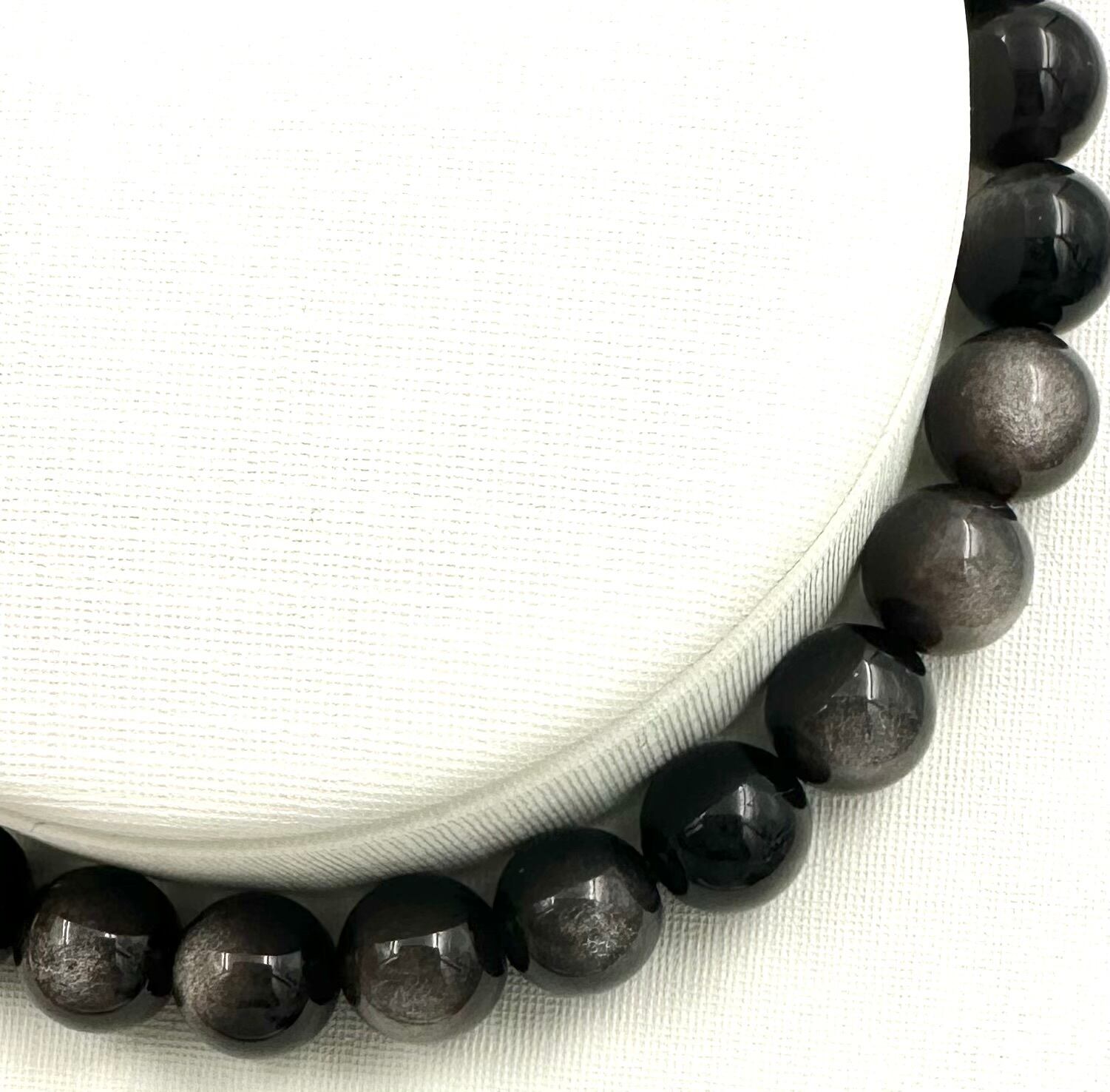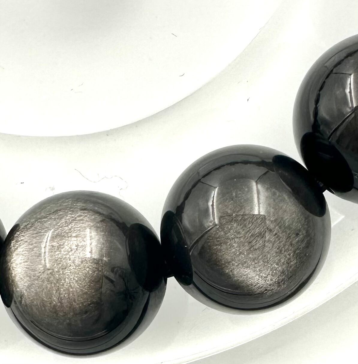 【当ショップではシルバーオブシディアンをサイズ違いで販売しています。14mm/12mm/10mm/8mm/6mm全て同品質です。シルバーオブシディアンの特徴であるシルバーシラー写真を掲載するにあたり、14mmサイズの写真を全サイズの商品写真で使用しています。ご購入の際はサイズを必ずご確認いただきお間違いのないようお願いいたします】
