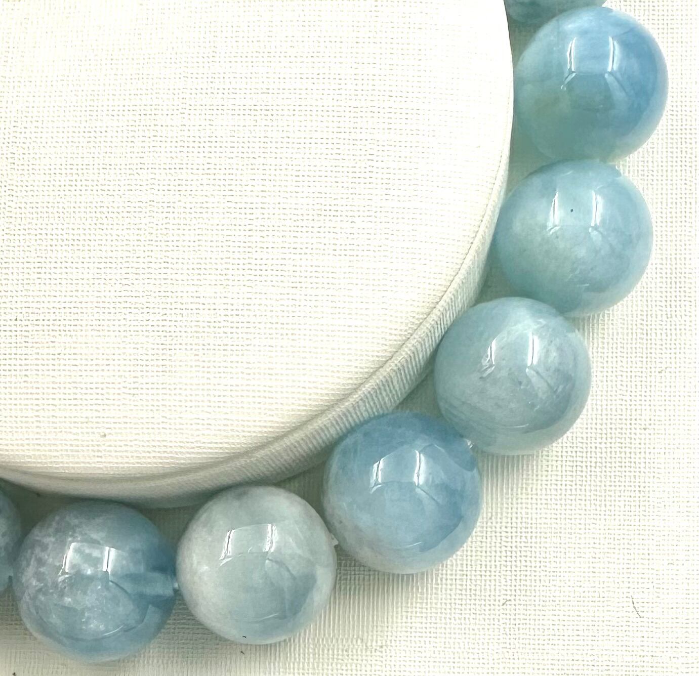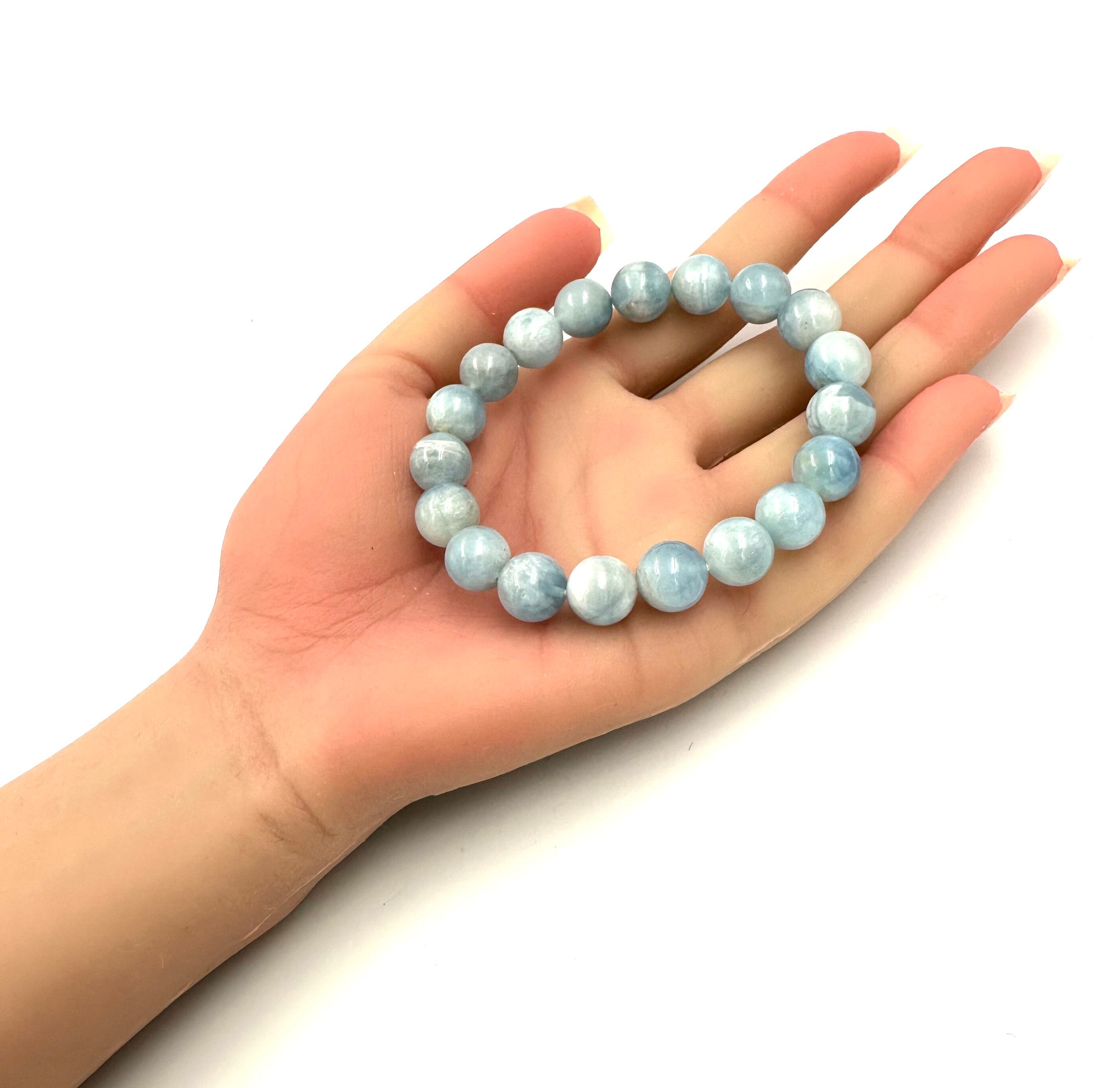 (01185)(1点のみ)(選べる内径)アクアマリン【10mm】ベビーブルー Aquamarine 藍玉 水宝玉 ラウンドカット ブレスレット 天然石 パワーストーン