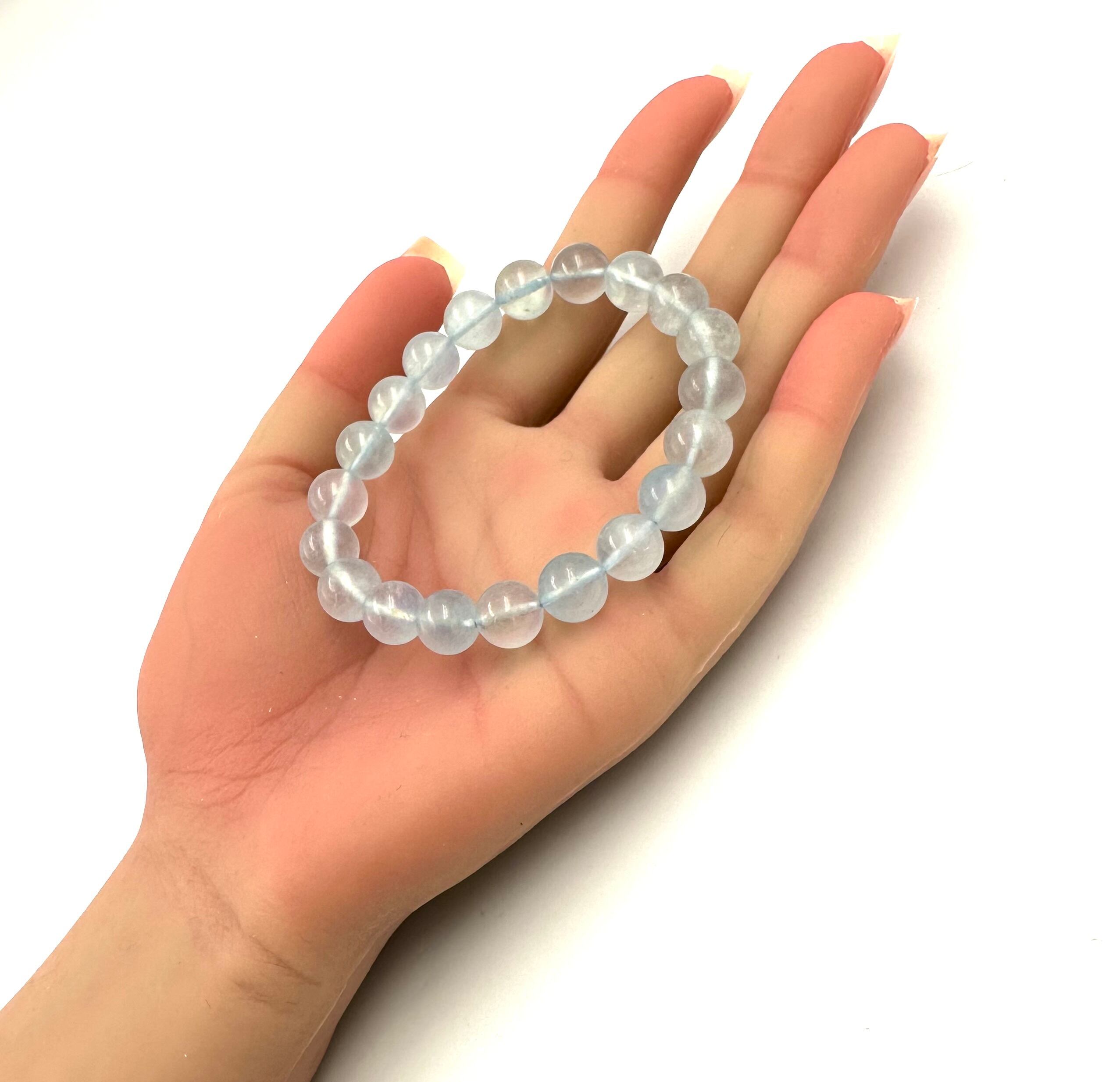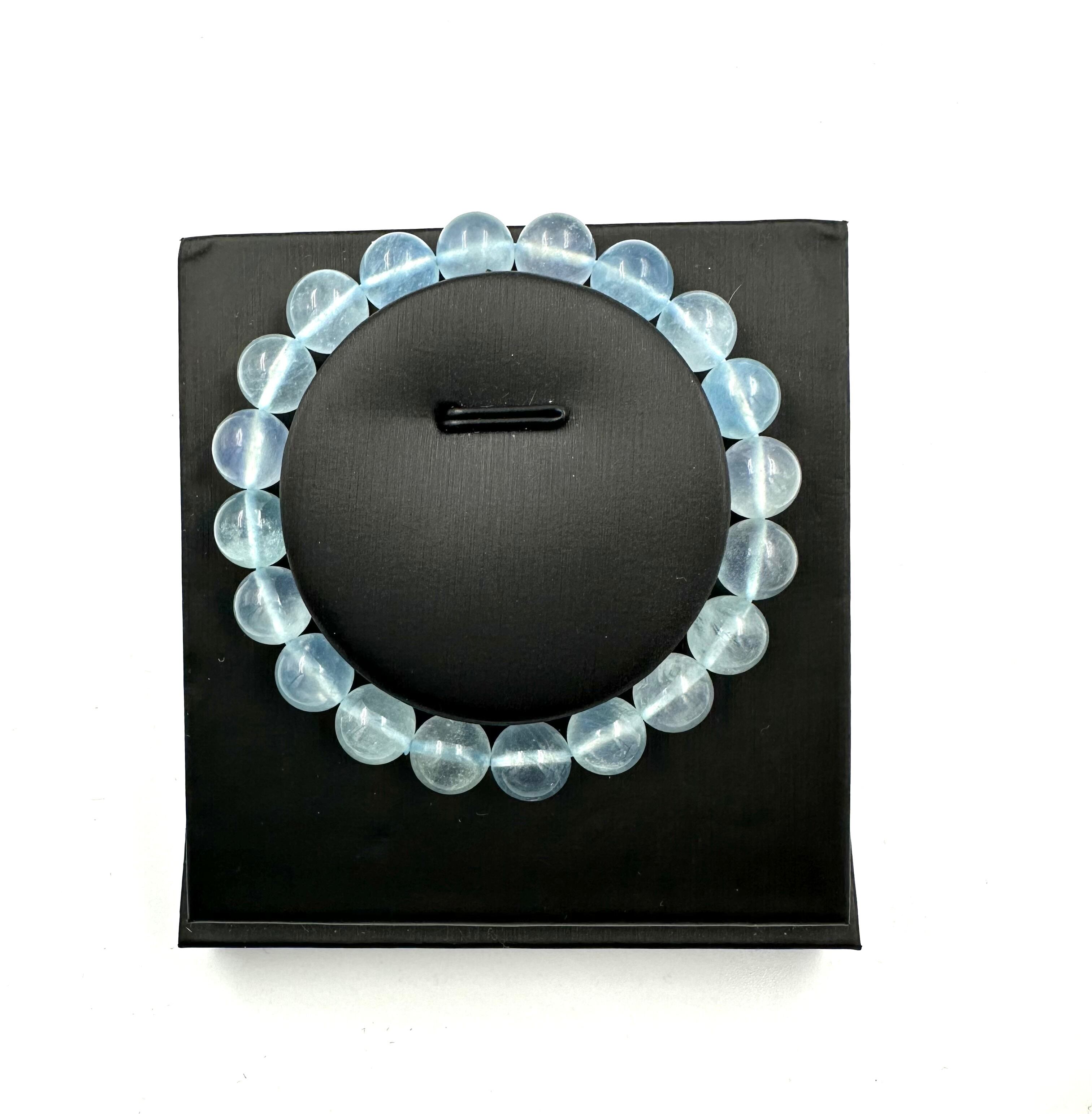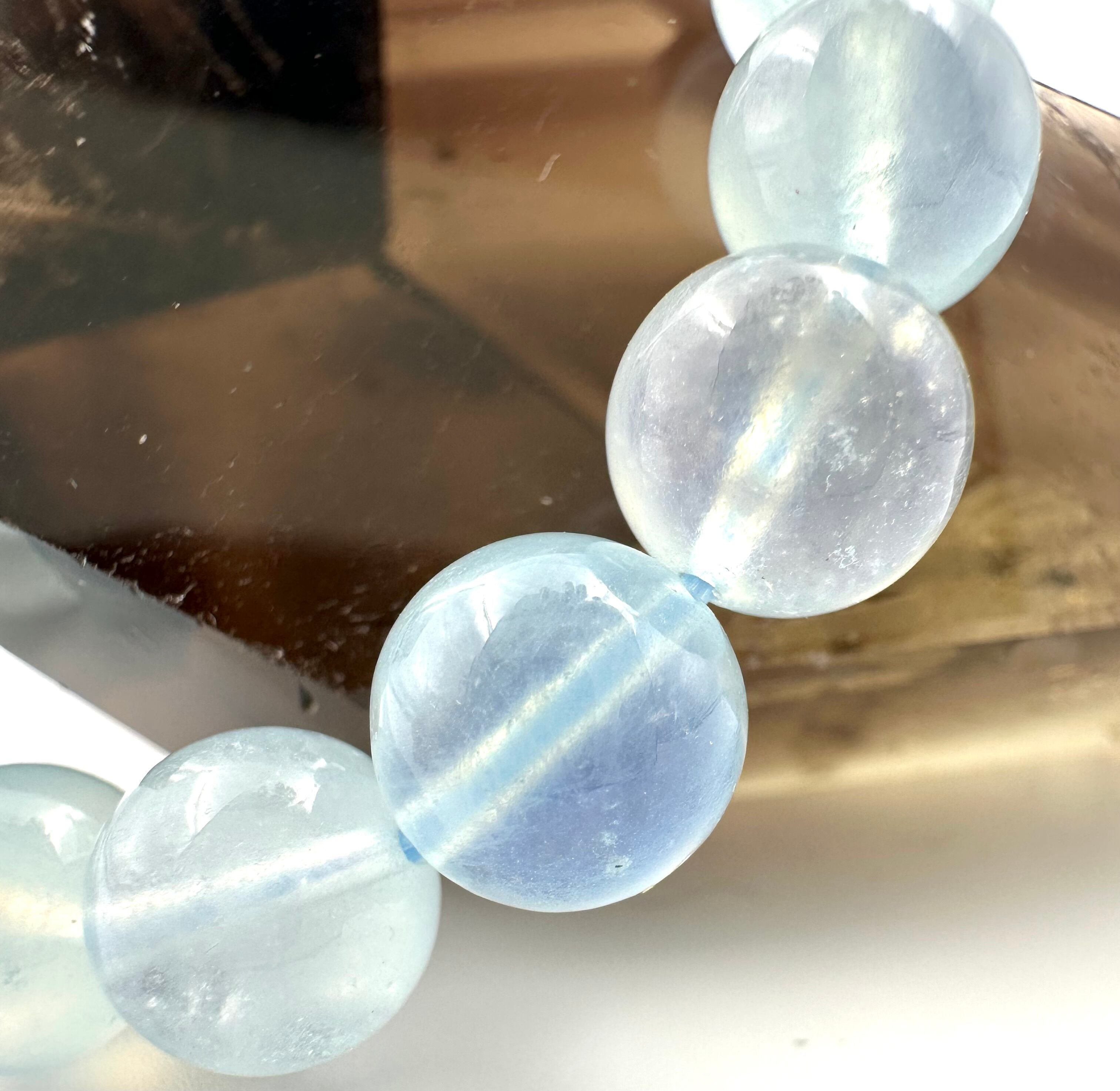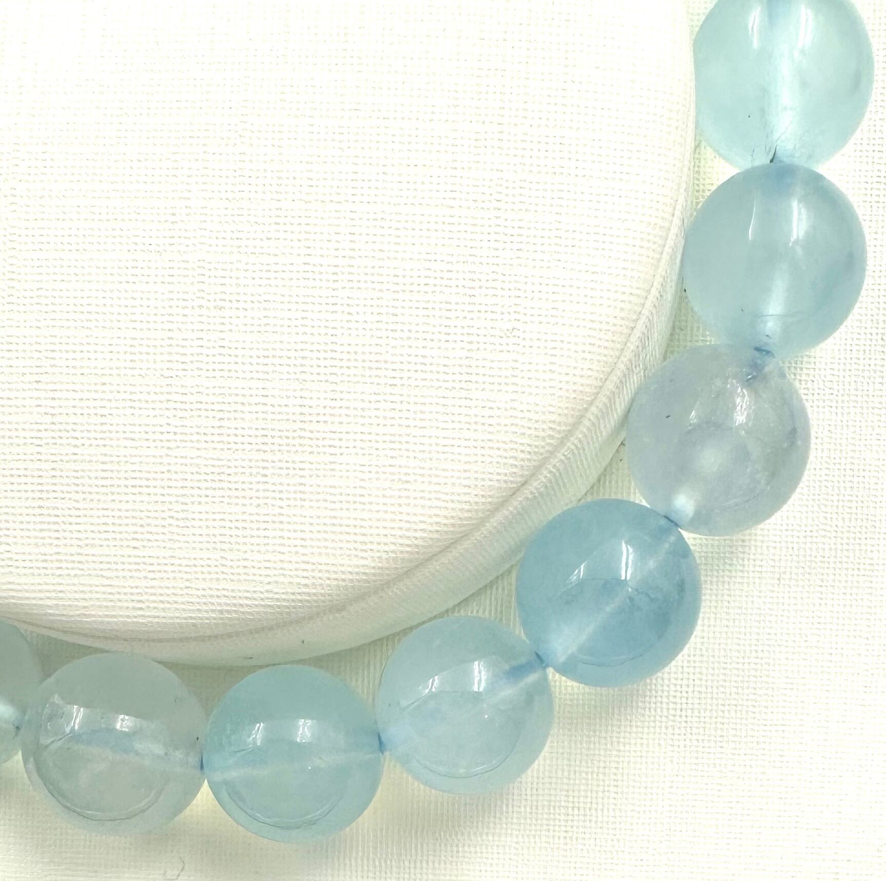 (01196)(1点のみ)(選べる内径)アクアマリン【9.5-10mm】ライトブルー Aquamarine 藍玉 水宝玉 ラウンドカット ブレスレット 天然石 パワーストーン