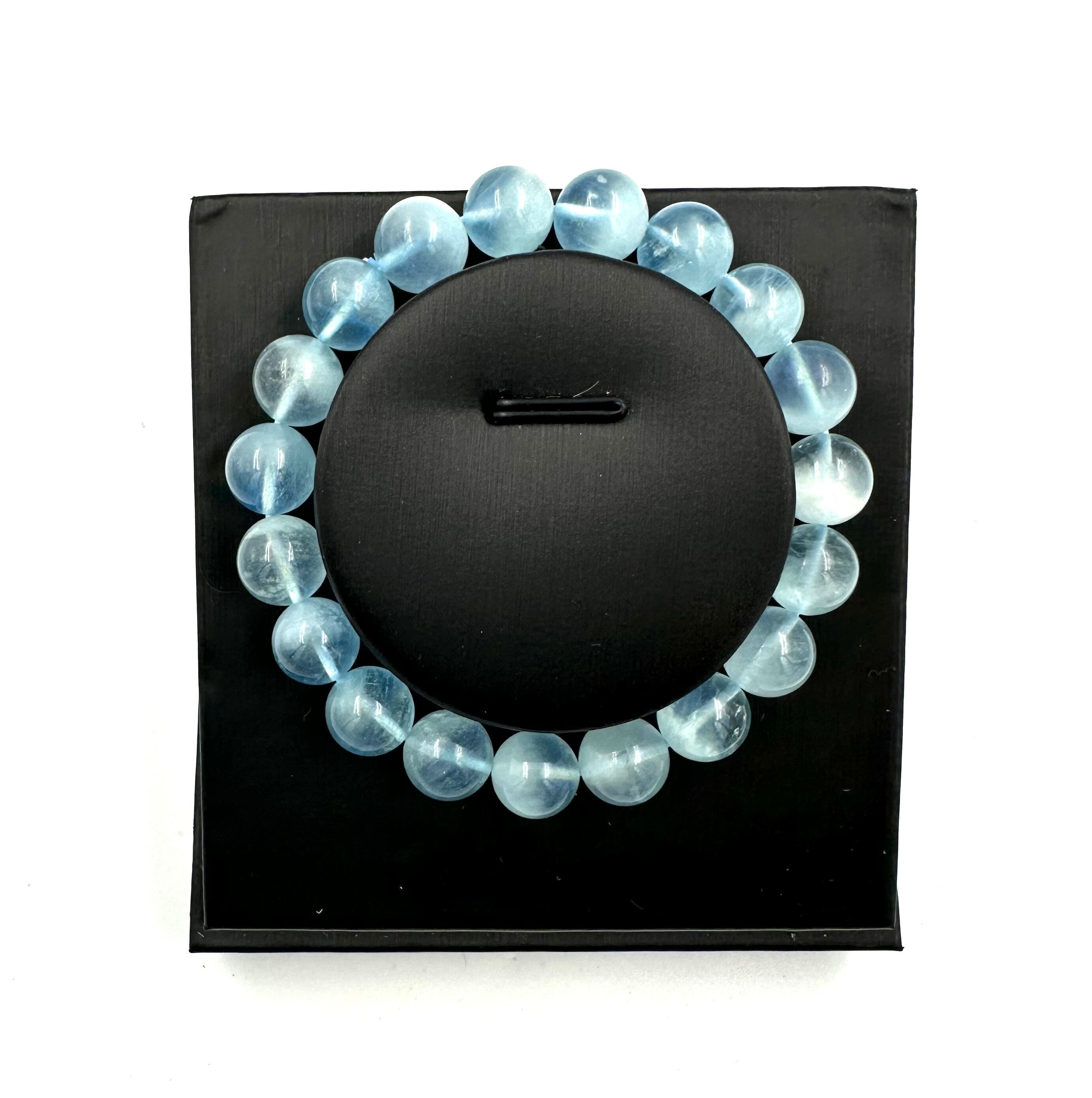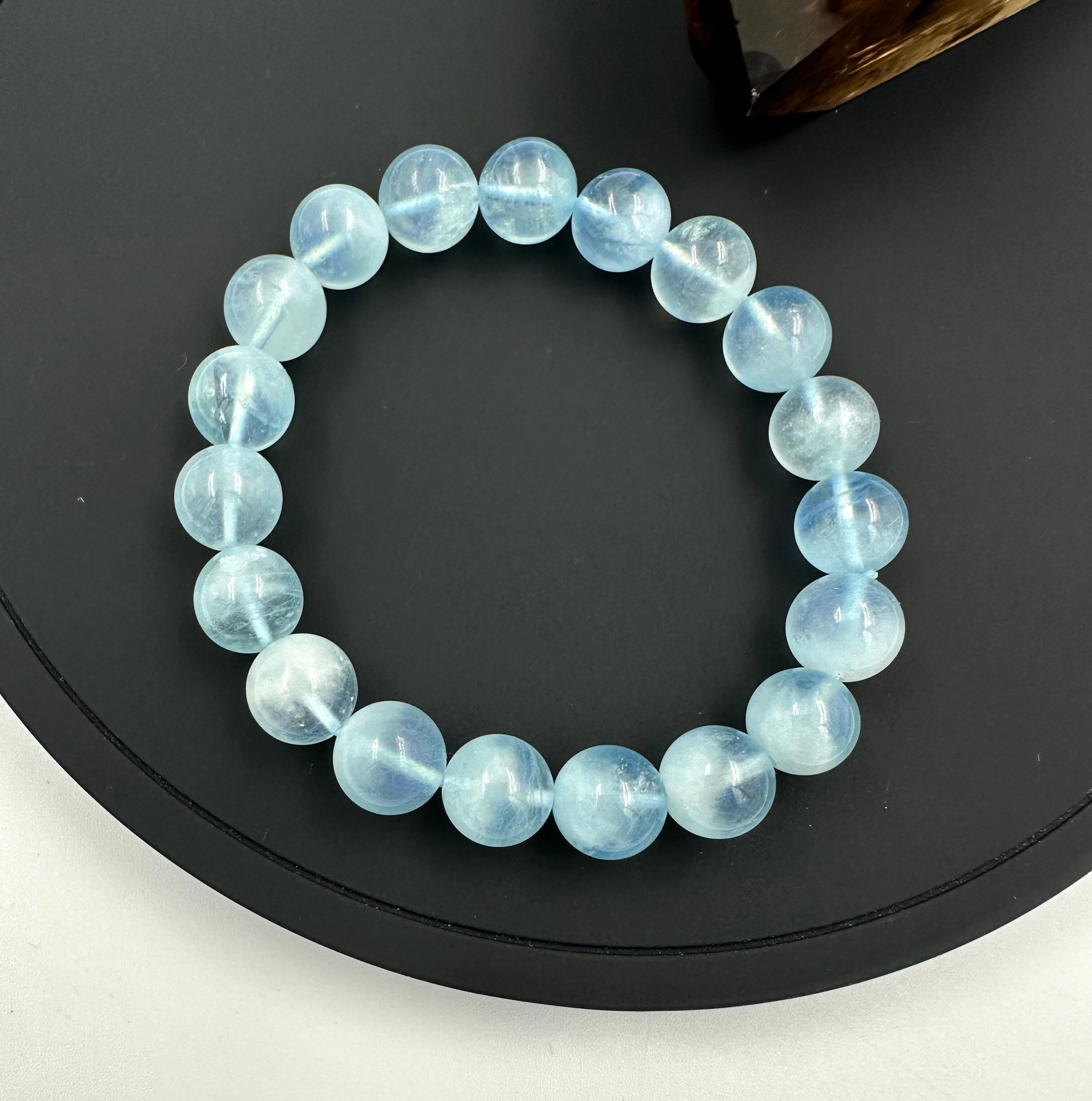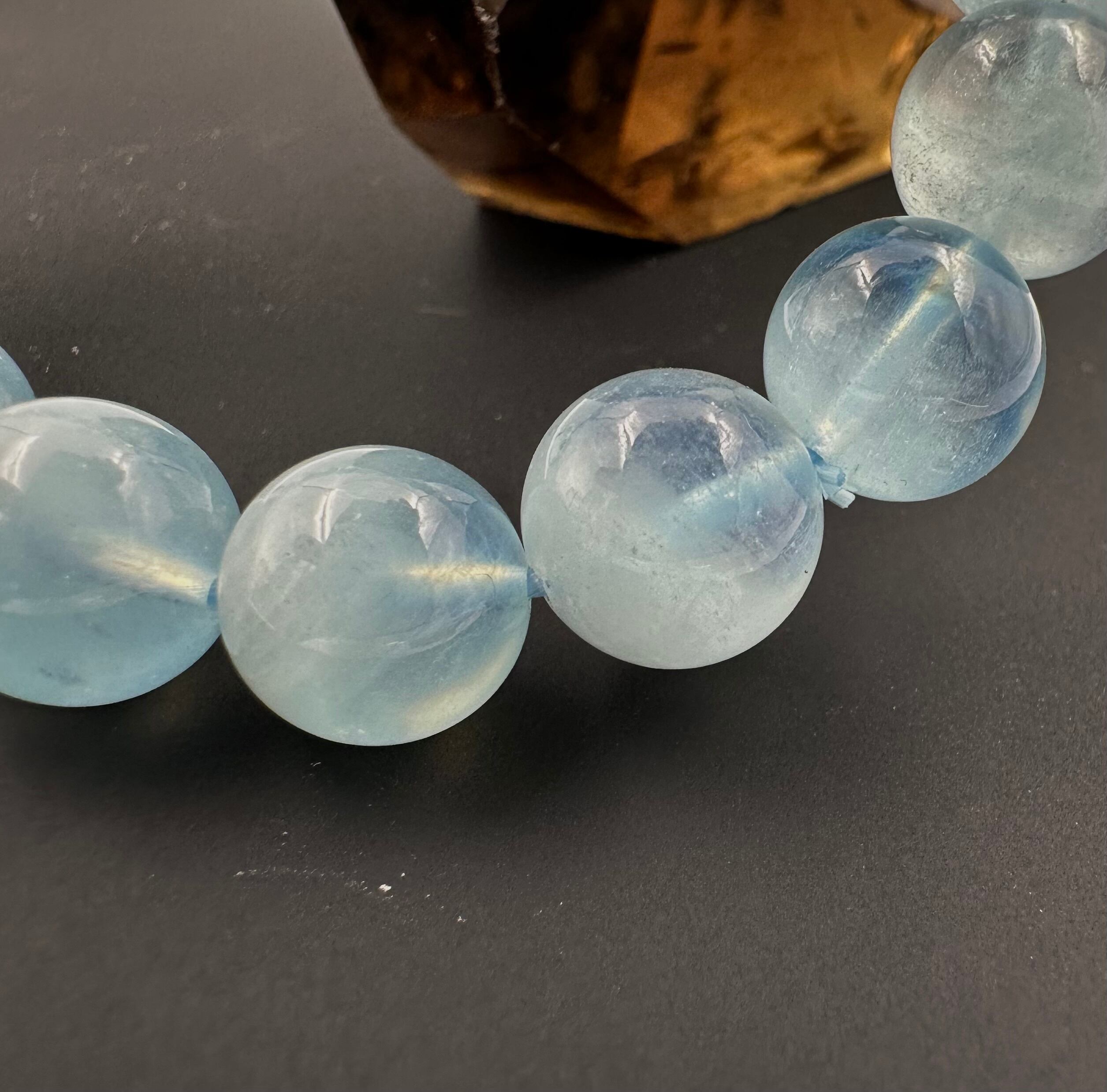 (01202)(1点のみ)(選べる内径)アクアマリン スノー入り【10mm】ライトブルー Aquamarine 藍玉 水宝玉 スノーアクアマリン ラウンドカット ブレスレット 天然石 パワーストーン