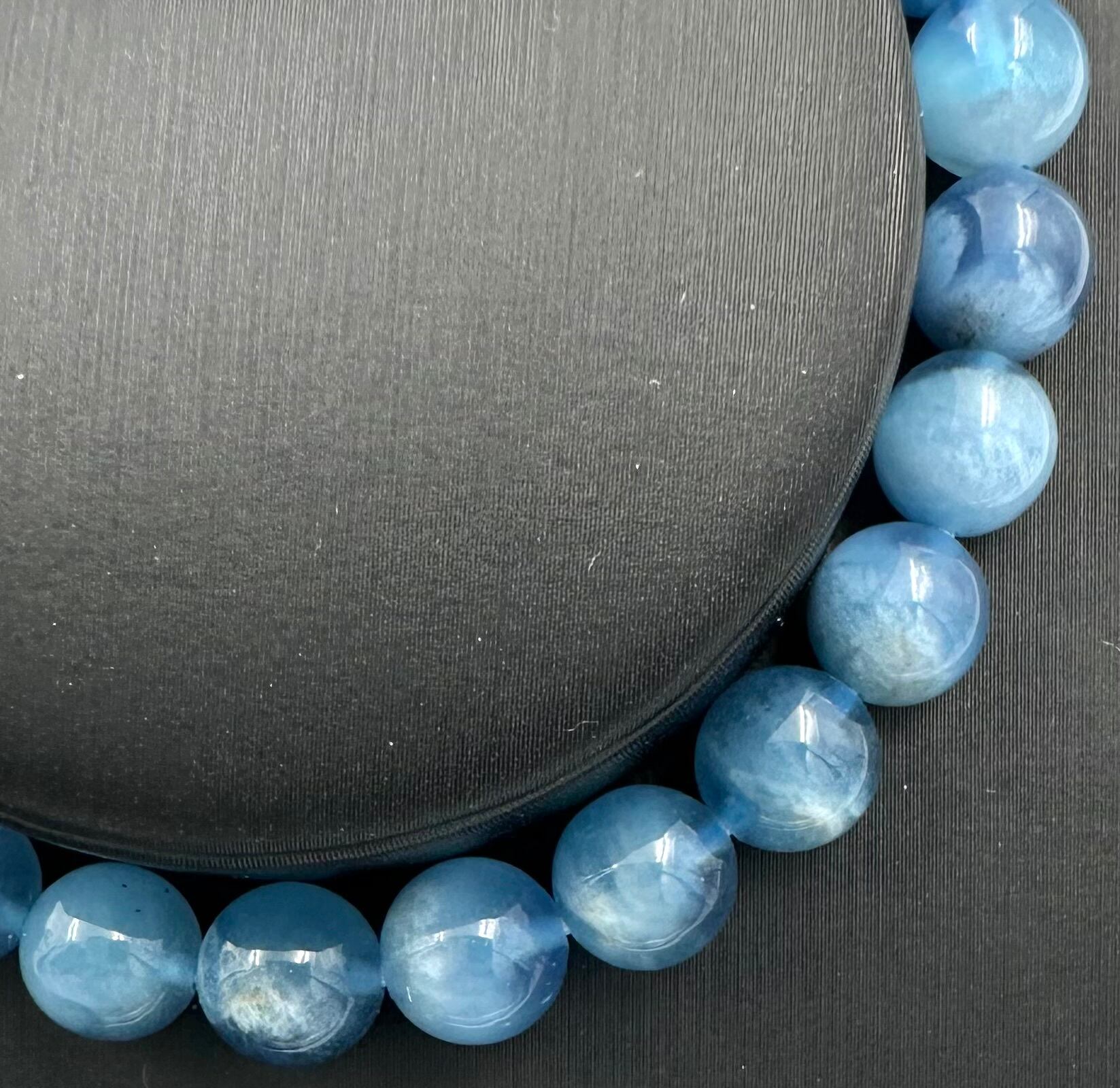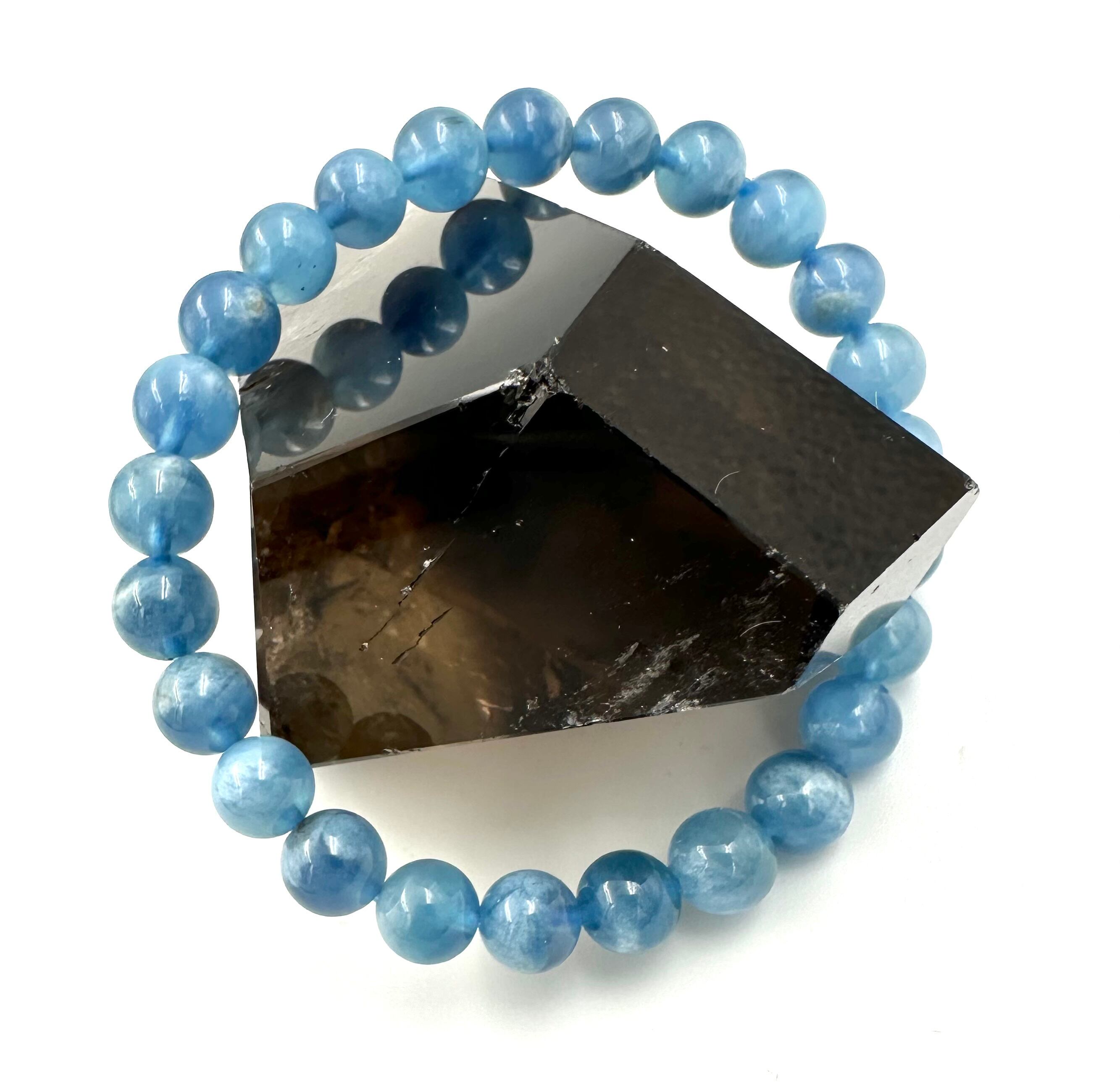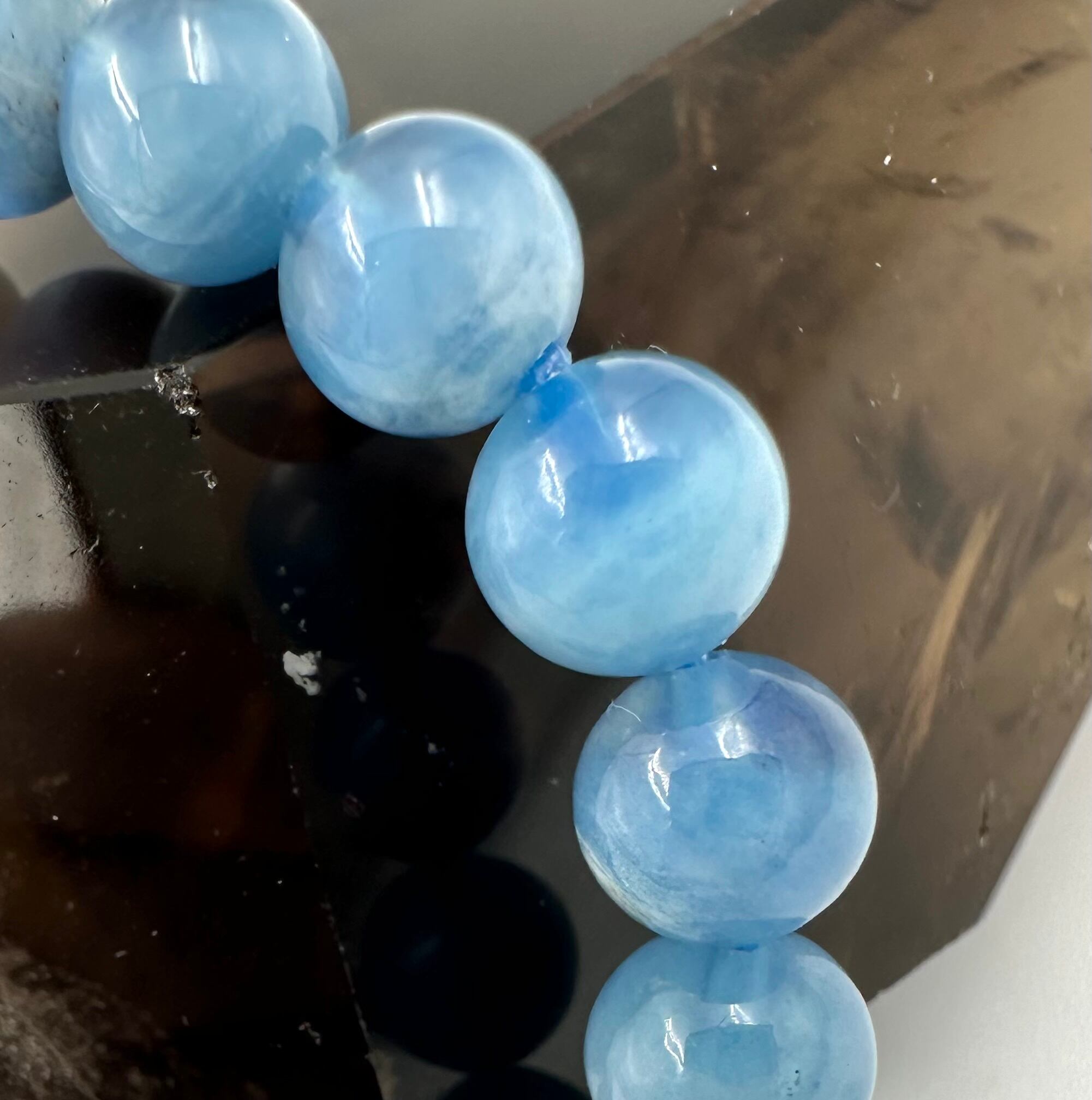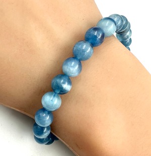 (01208)(1点のみ)(選べる内径)アクアマリン【7.5-8mm】ディープブルー スノーアクアマリン Aquamarine 藍玉 水宝玉 ラウンドカット ブレスレット 天然石 パワーストーン