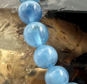 ▷こちらは(c)のタイプです。ライトブルーより濃いディープブルー、透明感があり内包物がスノーのように入っています。そのため柄ビーズのように可愛いです。じっくり見るとビーズごとに薄くグラデーションが入っていたり天然石らしい美しさを持っています。アクアマリンはコレクターの方も多いですが、まずこちらはいかがでしょうか。お探しの方はぜひご検討ください。