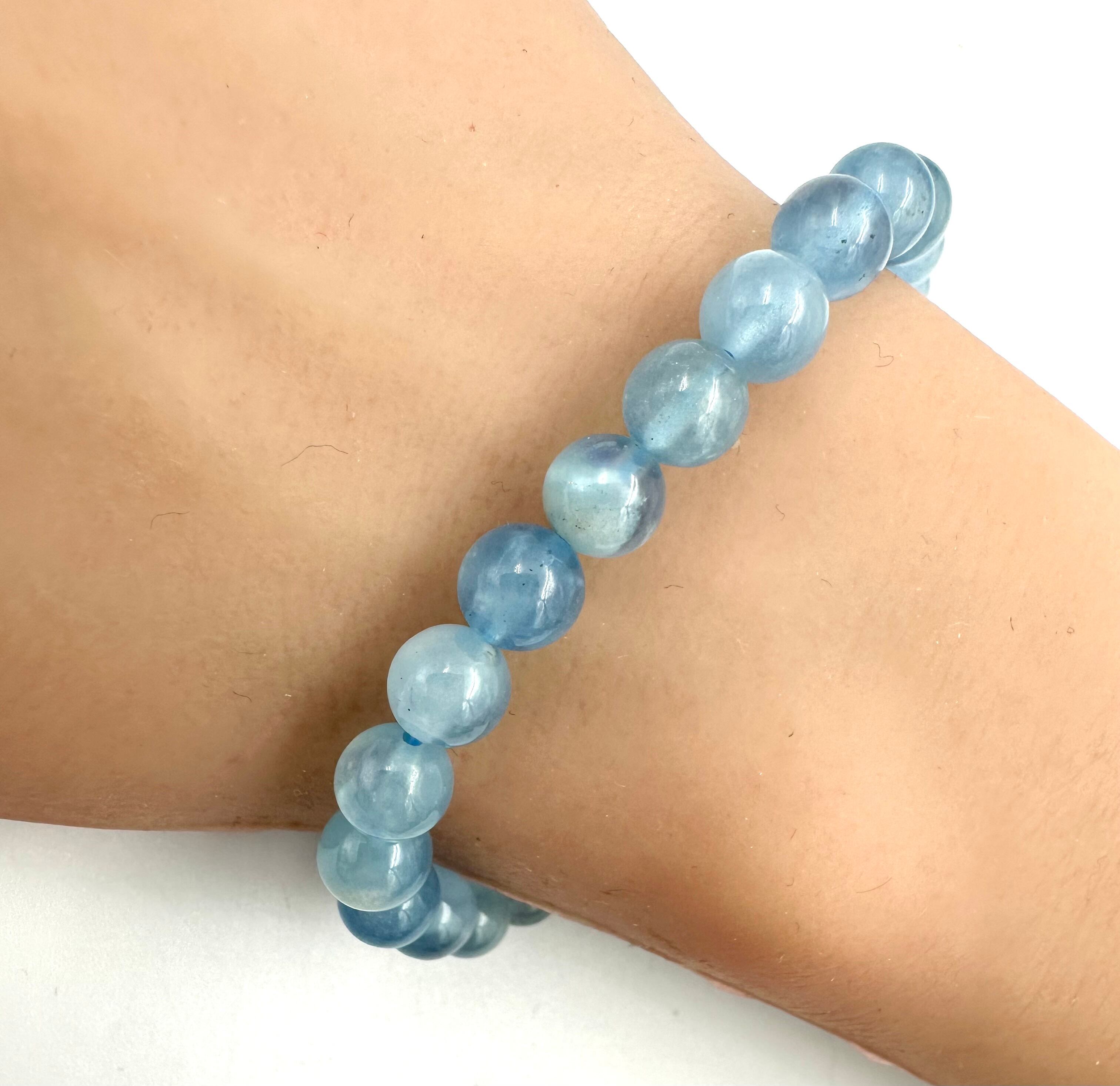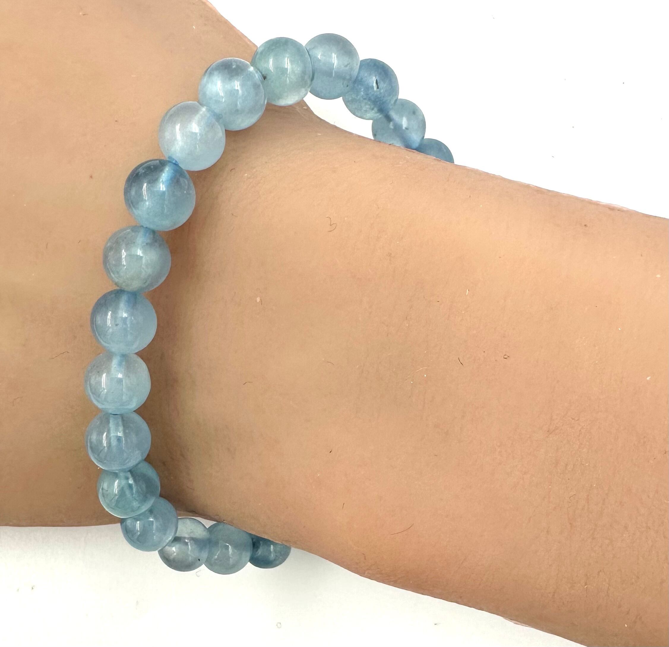 (01209)(1点のみ)(選べる内径)アクアマリン【7mm】ライトブルー スノーアクアマリン Aquamarine 藍玉 水宝玉 ラウンドカット ブレスレット 天然石 パワーストーン