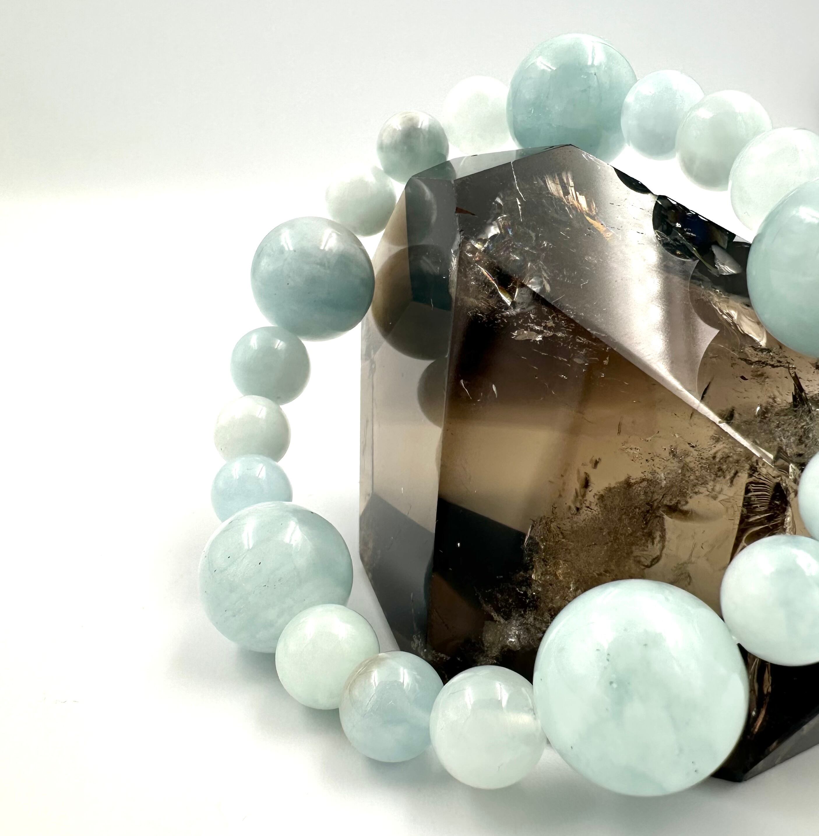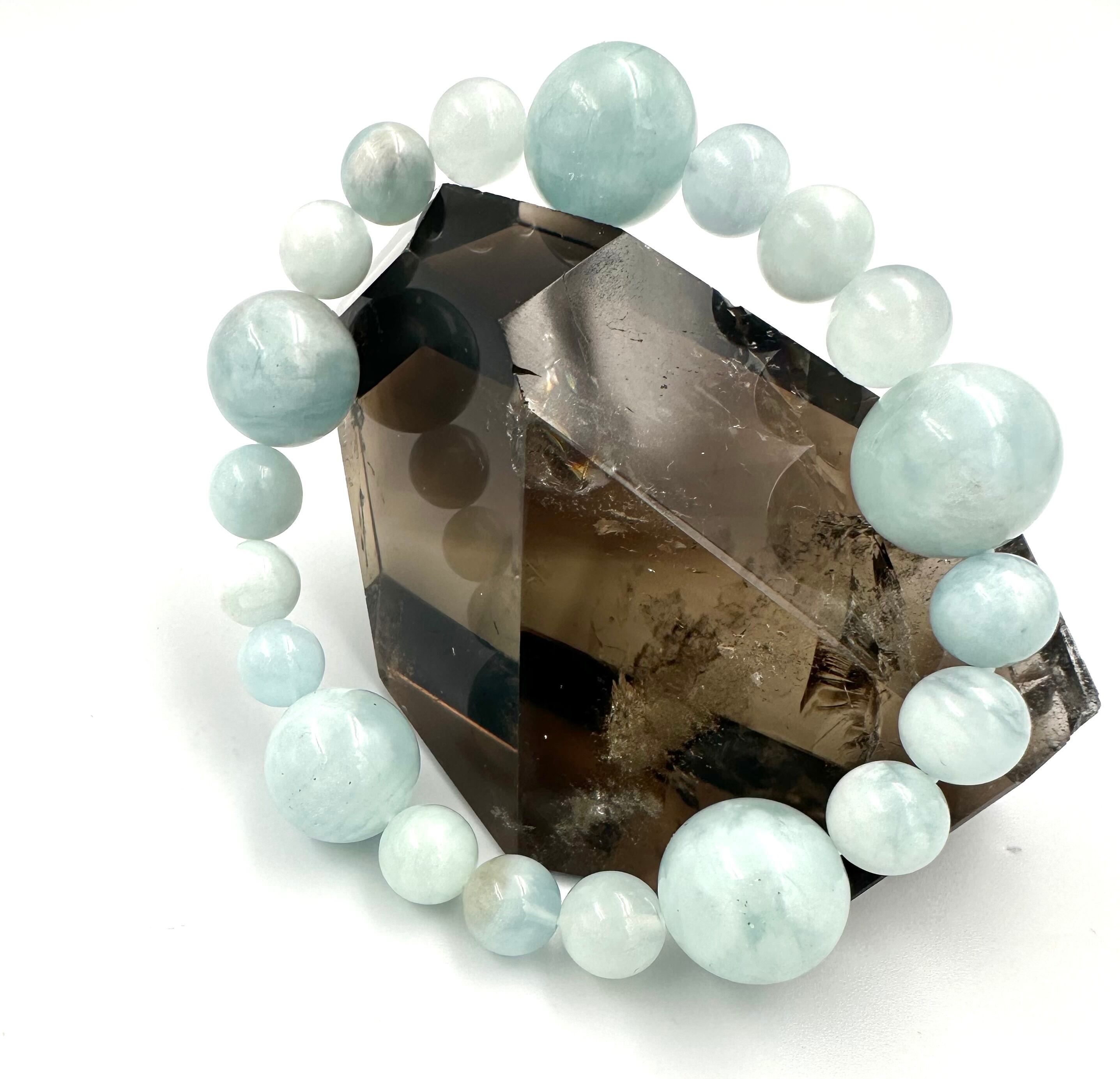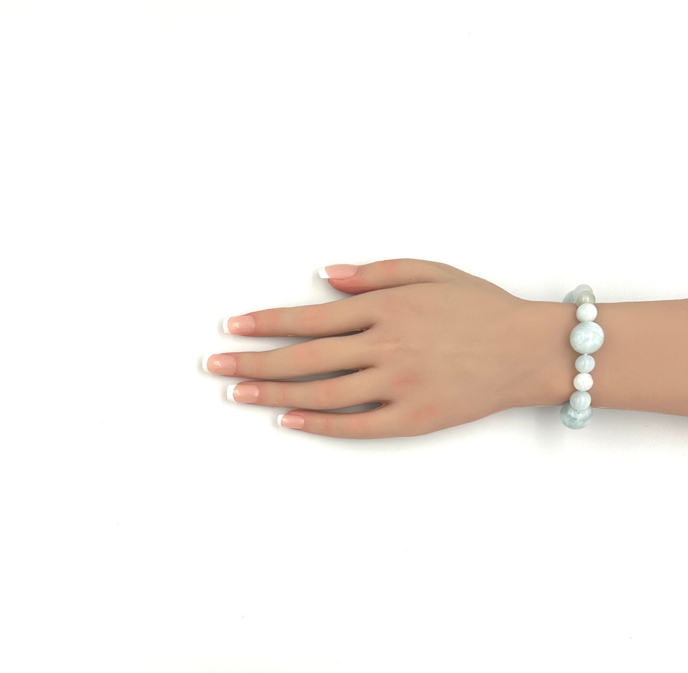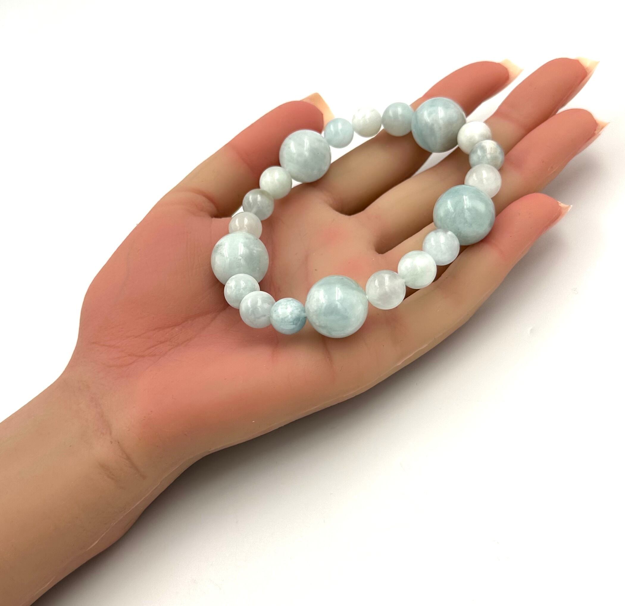 (01219)(選べる内径)アクアマリン【9mm/15.5mm】ベビーブルーアクアマリン Aquamarine 藍玉 水宝玉 ラウンドカット ブレスレット 天然石 パワーストーン デザインブレスレット デザブレ