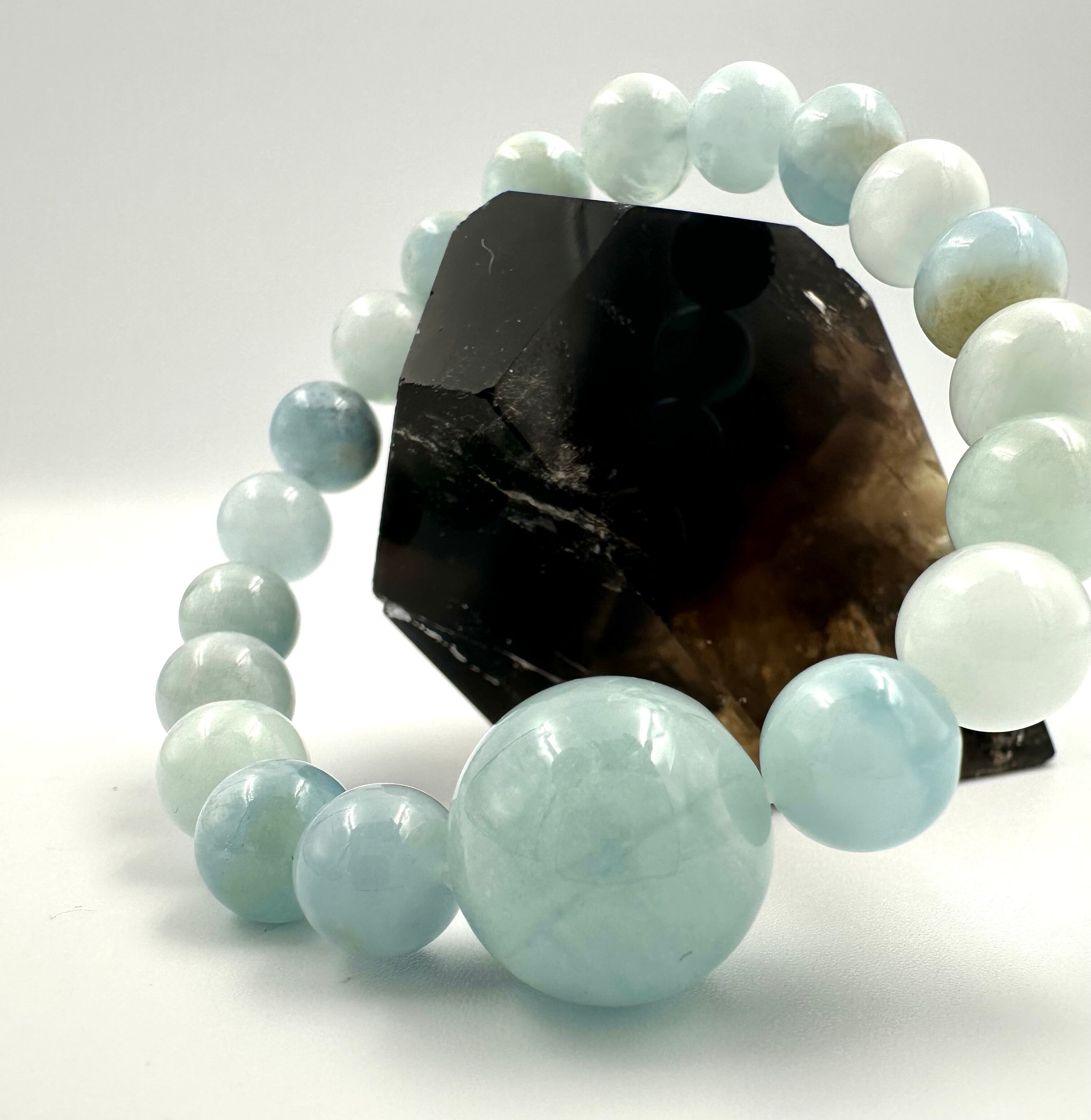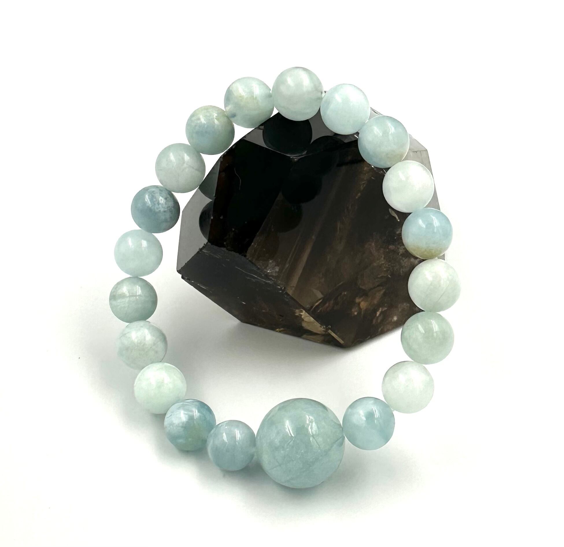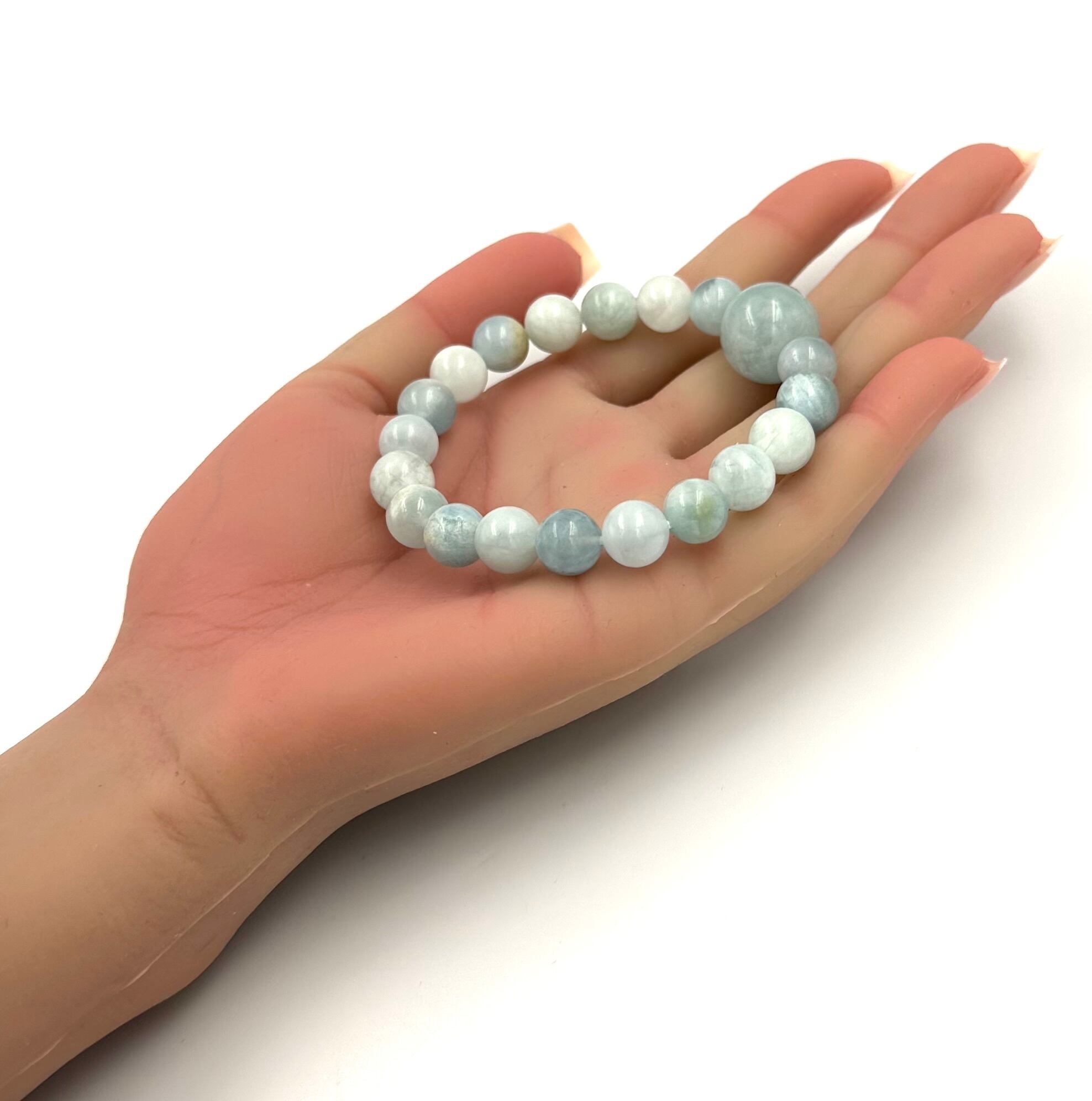 (01220)(1点のみ)(選べる内径)アクアマリン【9mm/15.5mm】ベビーブルーアクアマリン Aquamarine 藍玉 水宝玉 ラウンドカット ブレスレット 天然石 パワーストーン デザインブレスレット デザブレ