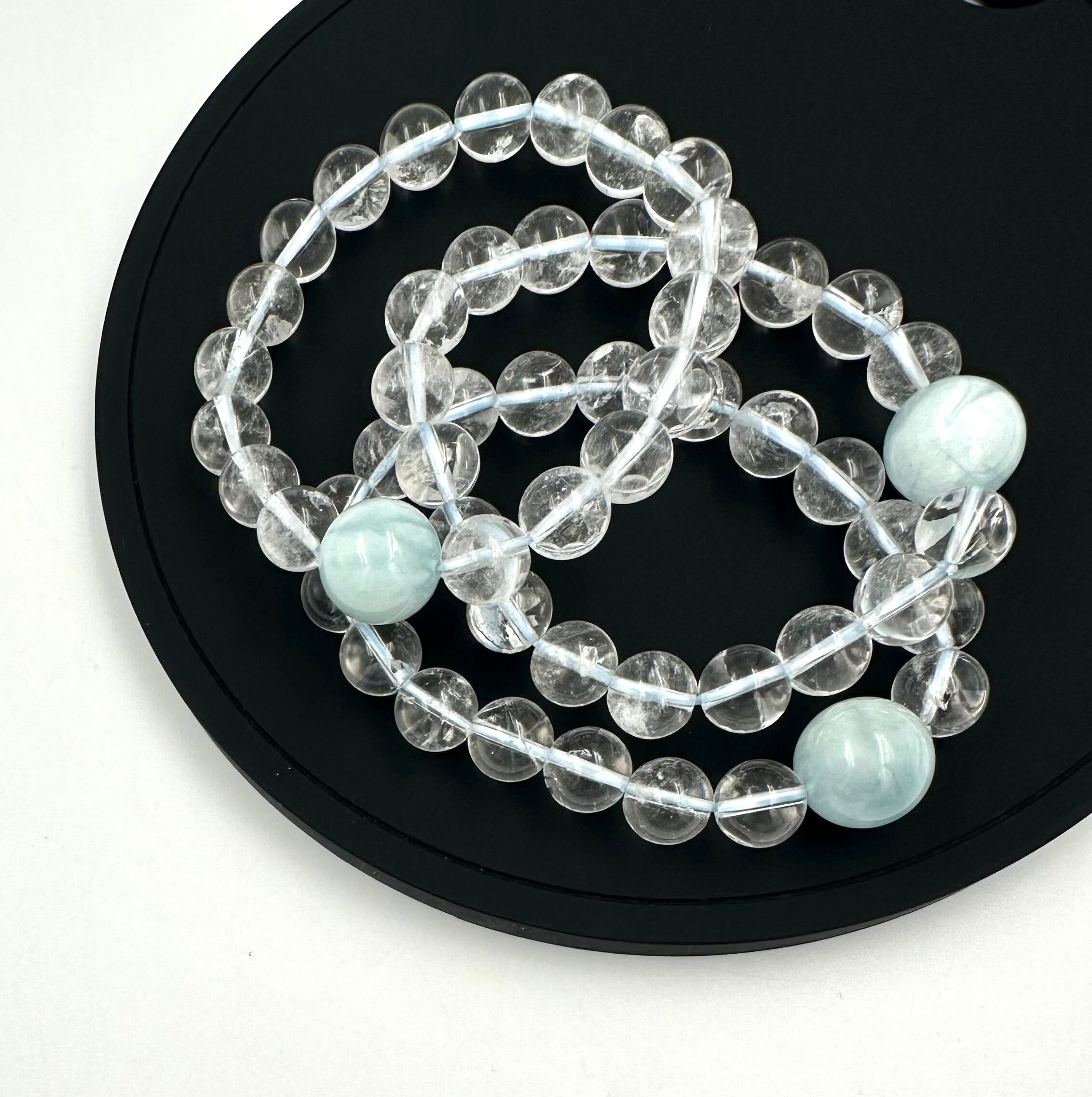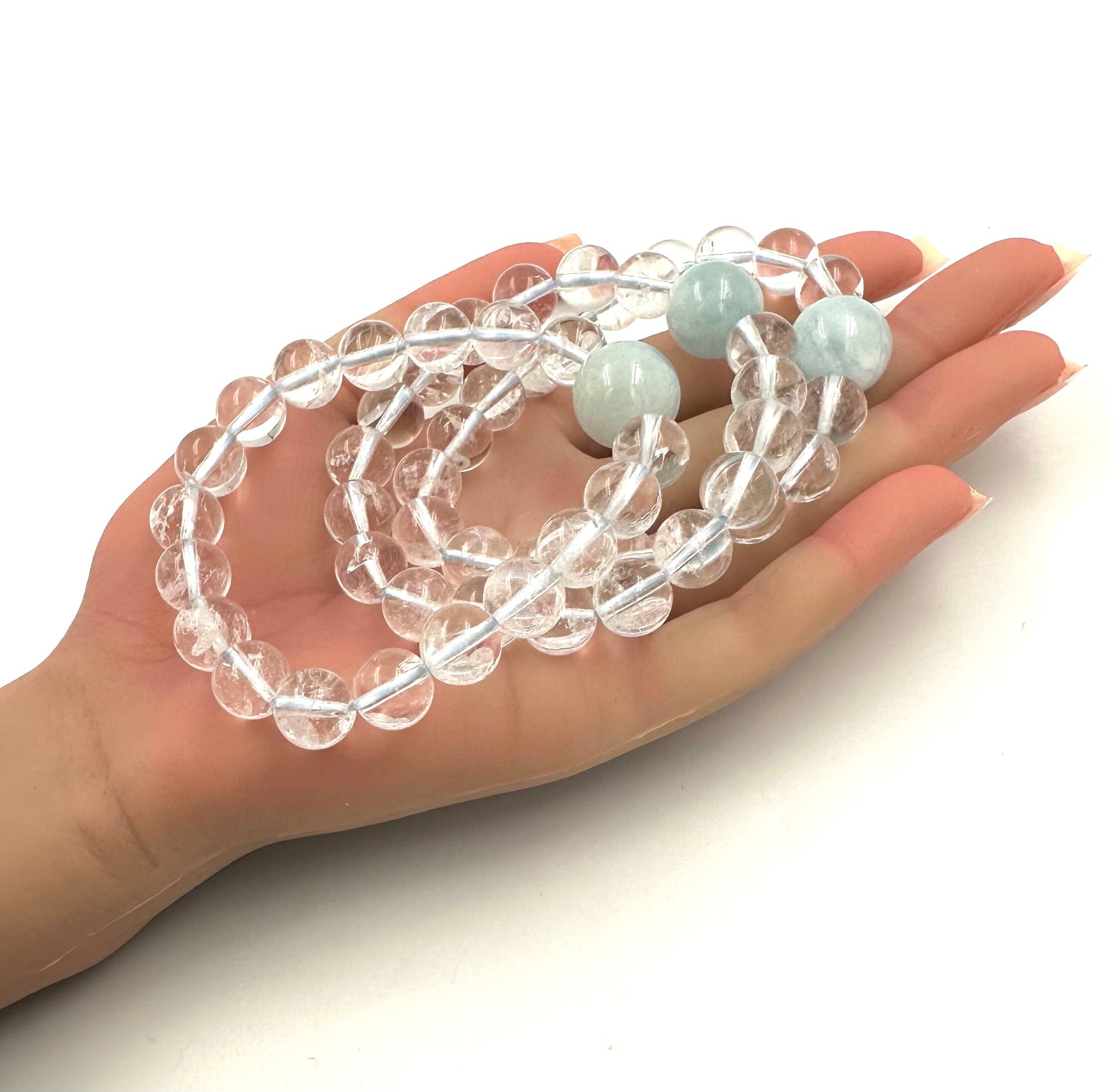 (01222)(選べる内径)アクアマリン クリスタル【10mm/15.5mm】ベビーブルーアクアマリン クリアクォーツ Aquamarine 藍玉 水宝玉 水晶 ラウンドカット ブレスレット 天然石 パワーストーン デザインブレスレット デザブレ