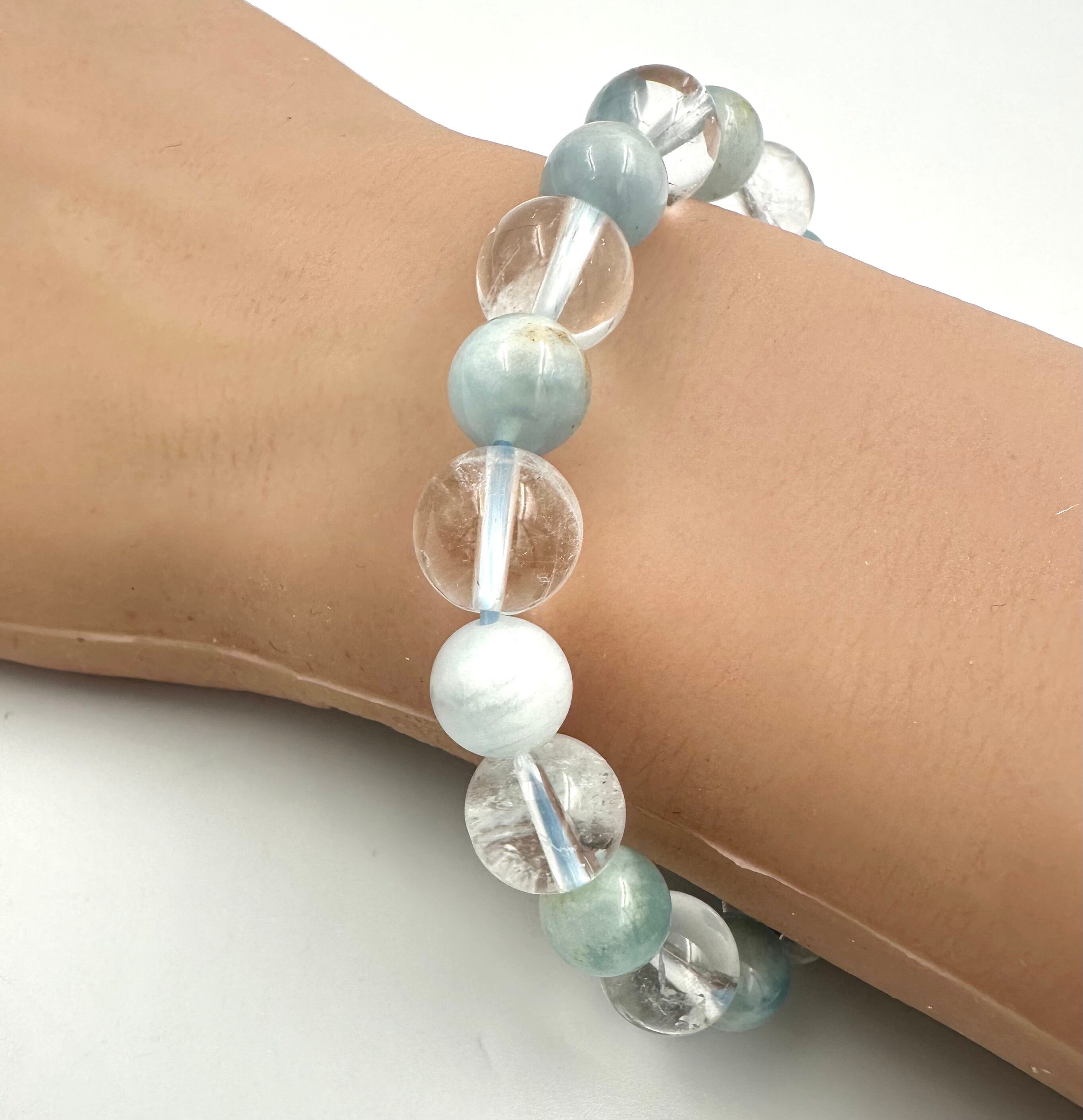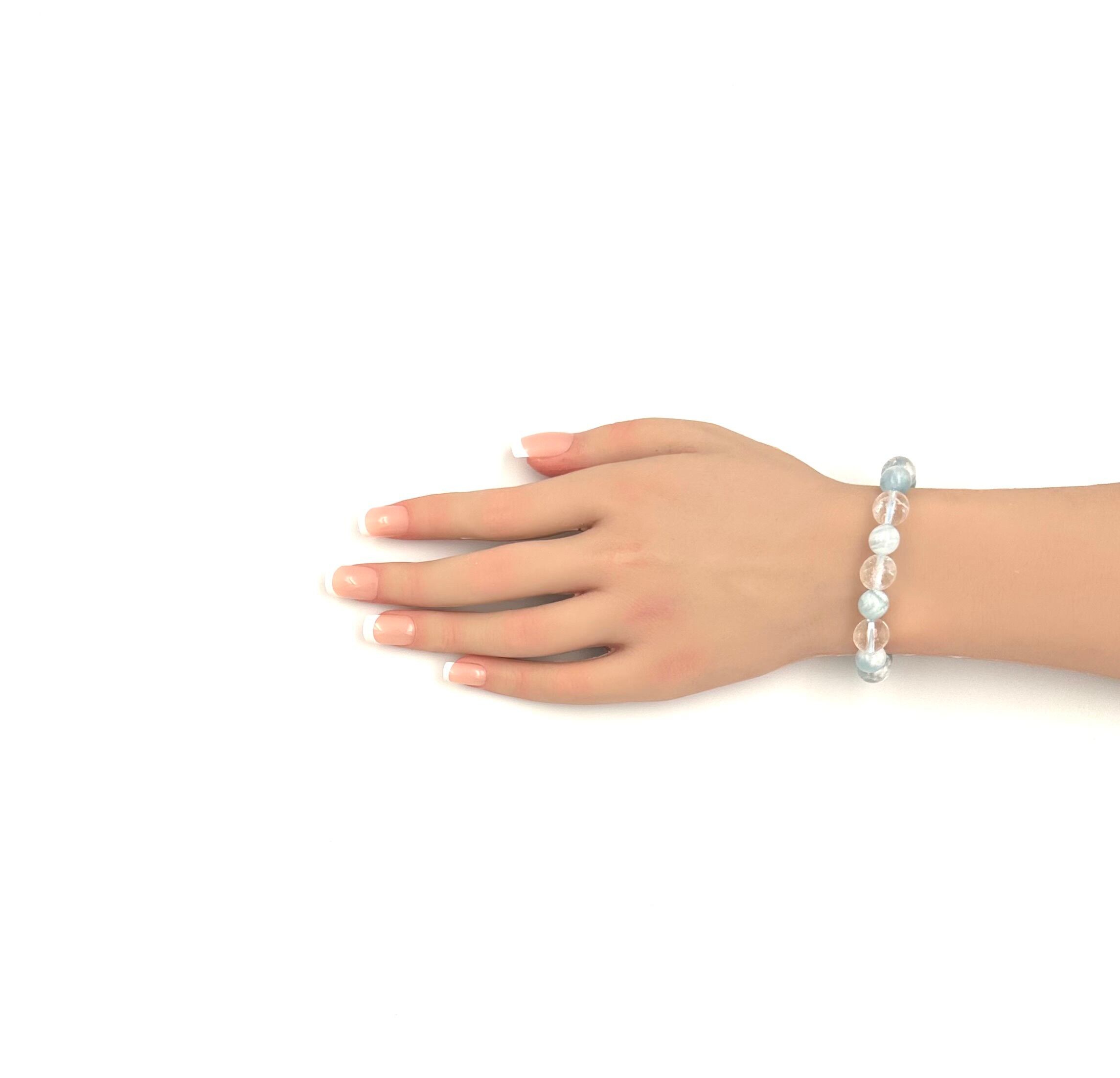 (01224)(1点のみ)(選べる内径)アクアマリン クリスタル【9-10mm】ベビーブルーアクアマリン クリアクォーツ Aquamarine 藍玉 水宝玉 水晶 ラウンドカット ブレスレット 天然石 パワーストーン デザインブレスレット デザブレ
