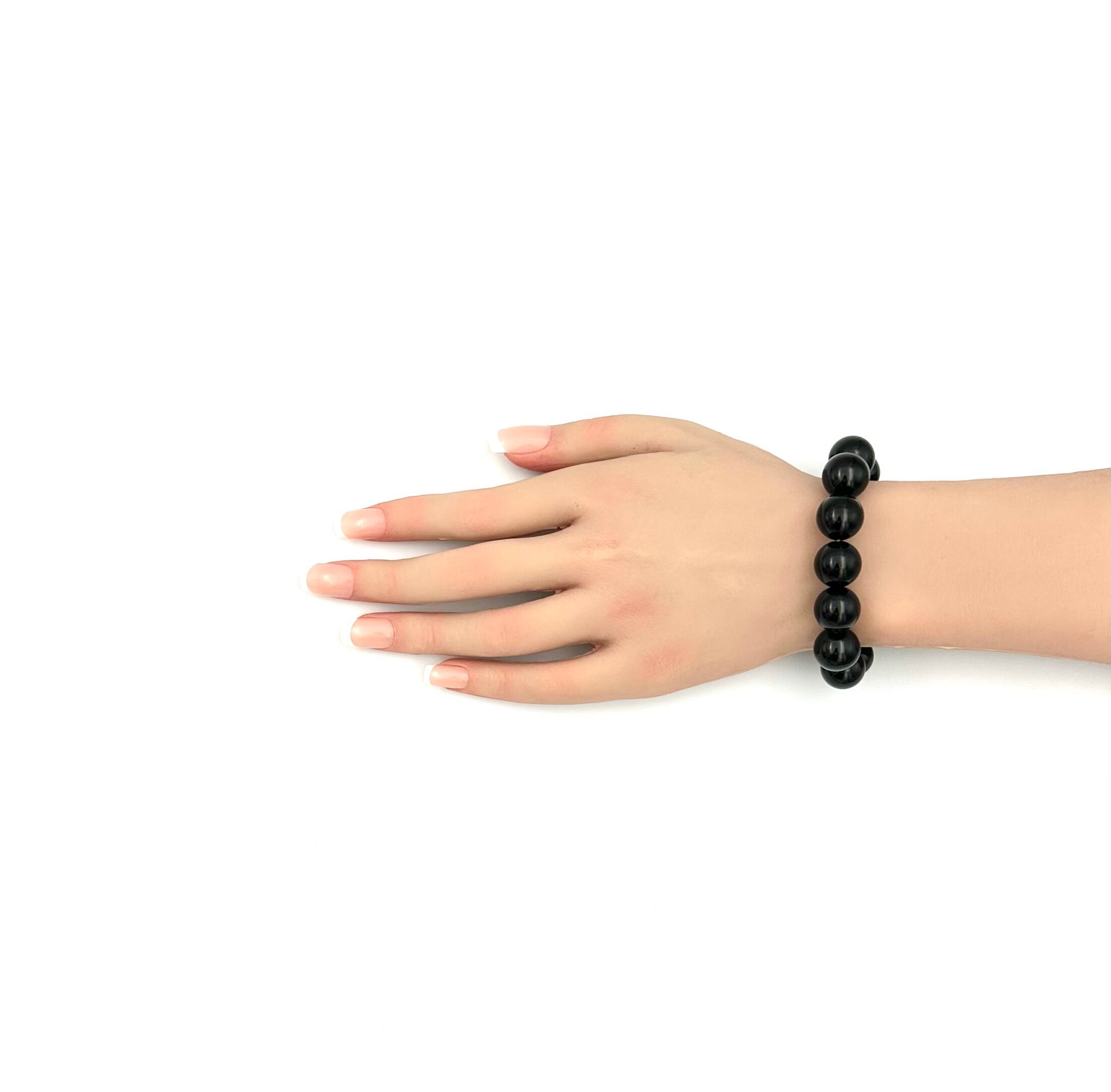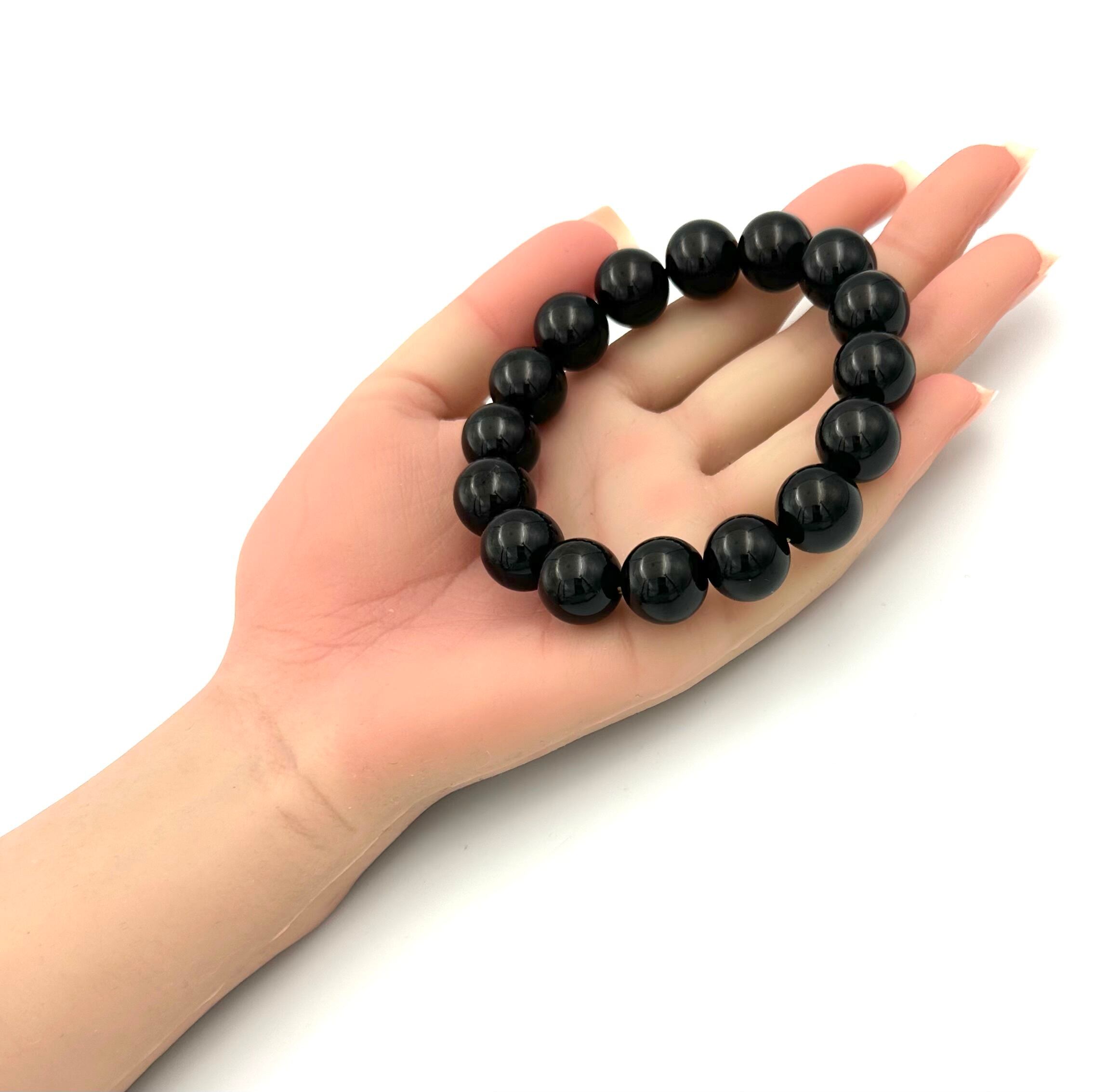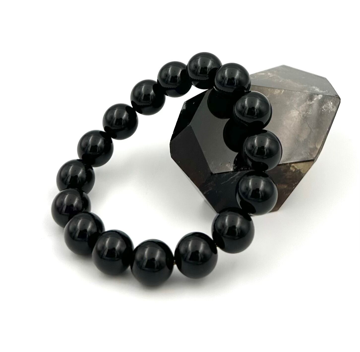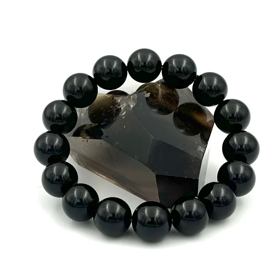 (01232)(鑑別書つき1点のみ)チベット産モリオン【14mm】Morion 黒水晶 ラウンドカット 魔除け 厄除け 天然石ブレスレット パワーストーン