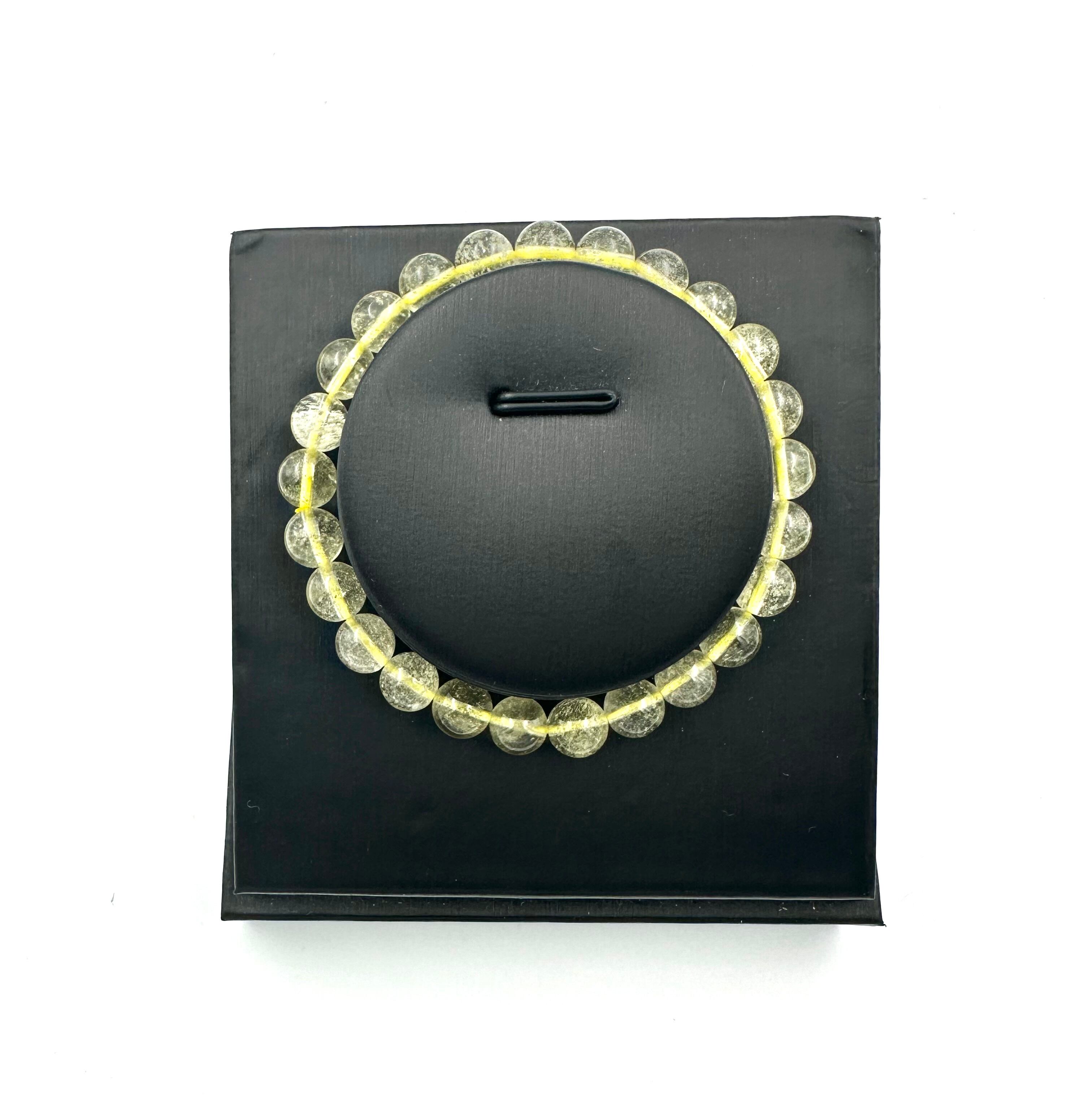 (00681)(鑑別書つき1点のみ)リビアングラス【7.5mm】Libyan Desert Glass リビア砂漠ガラス 隕石 いん石 ラウンドカット ヒーリング 天然石ブレスレット パワーストーン
