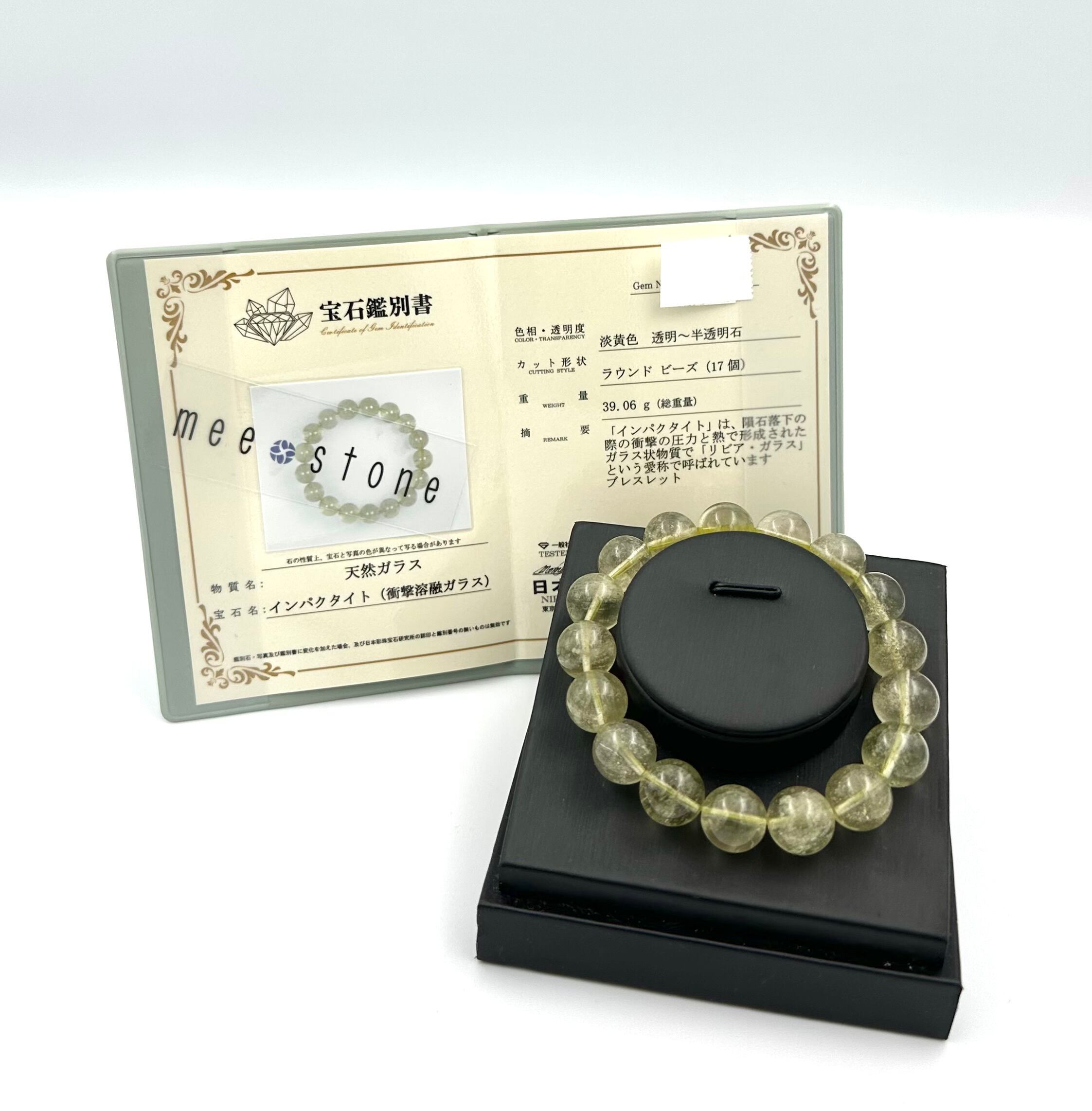 (01225)(鑑別書つき1点のみ)リビアングラス【12.5mm】Libyan Desert Glass リビア砂漠ガラス 隕石 いん石 ラウンドカット ヒーリング 天然石ブレスレット パワーストーン