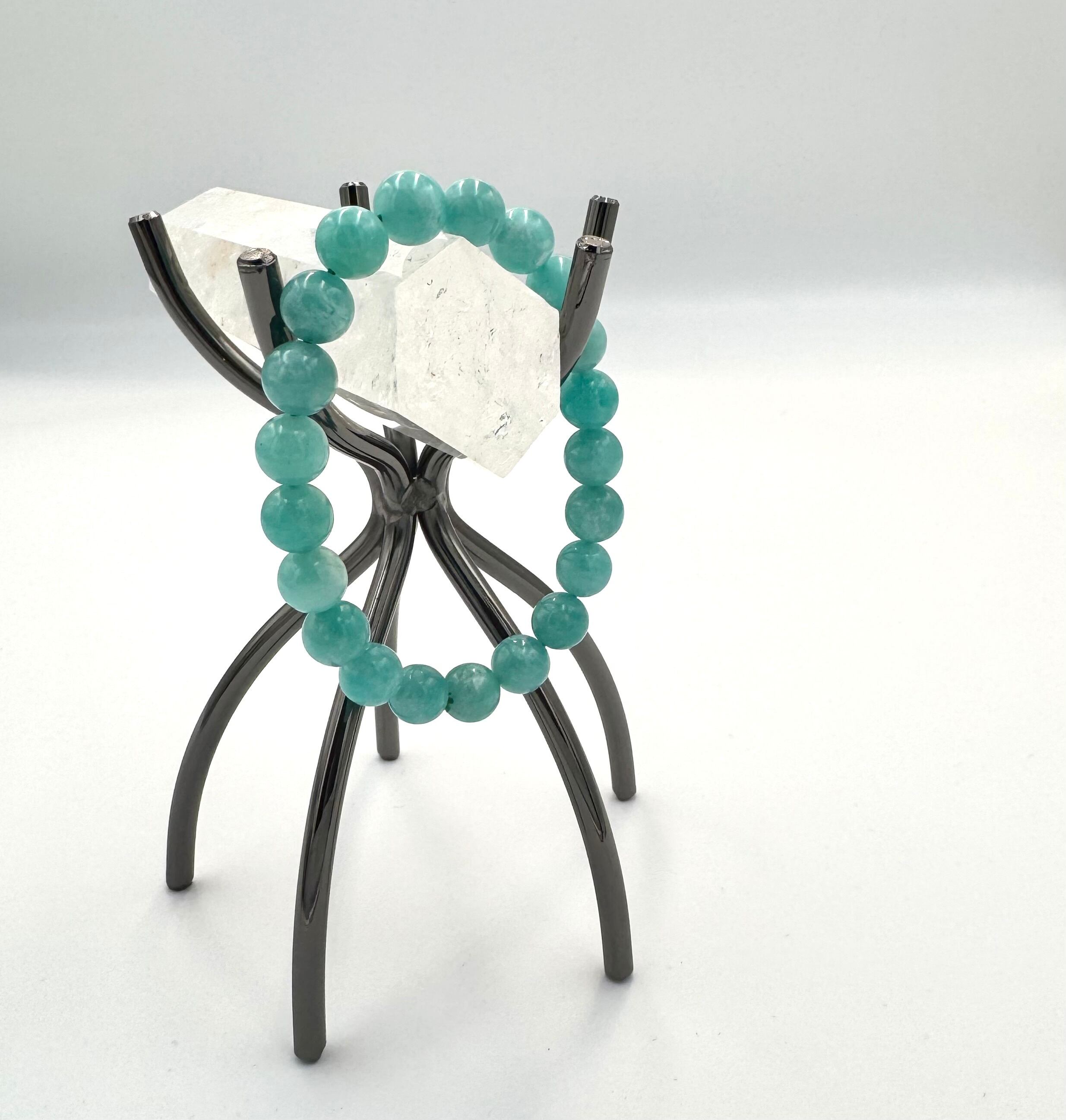 アマゾナイトは、青緑色をした天然石で、「天河石(てんがせき)」という和名があります。フェルスパー(長石)グループに属する鉱物で、マイクロクリンの一種です。