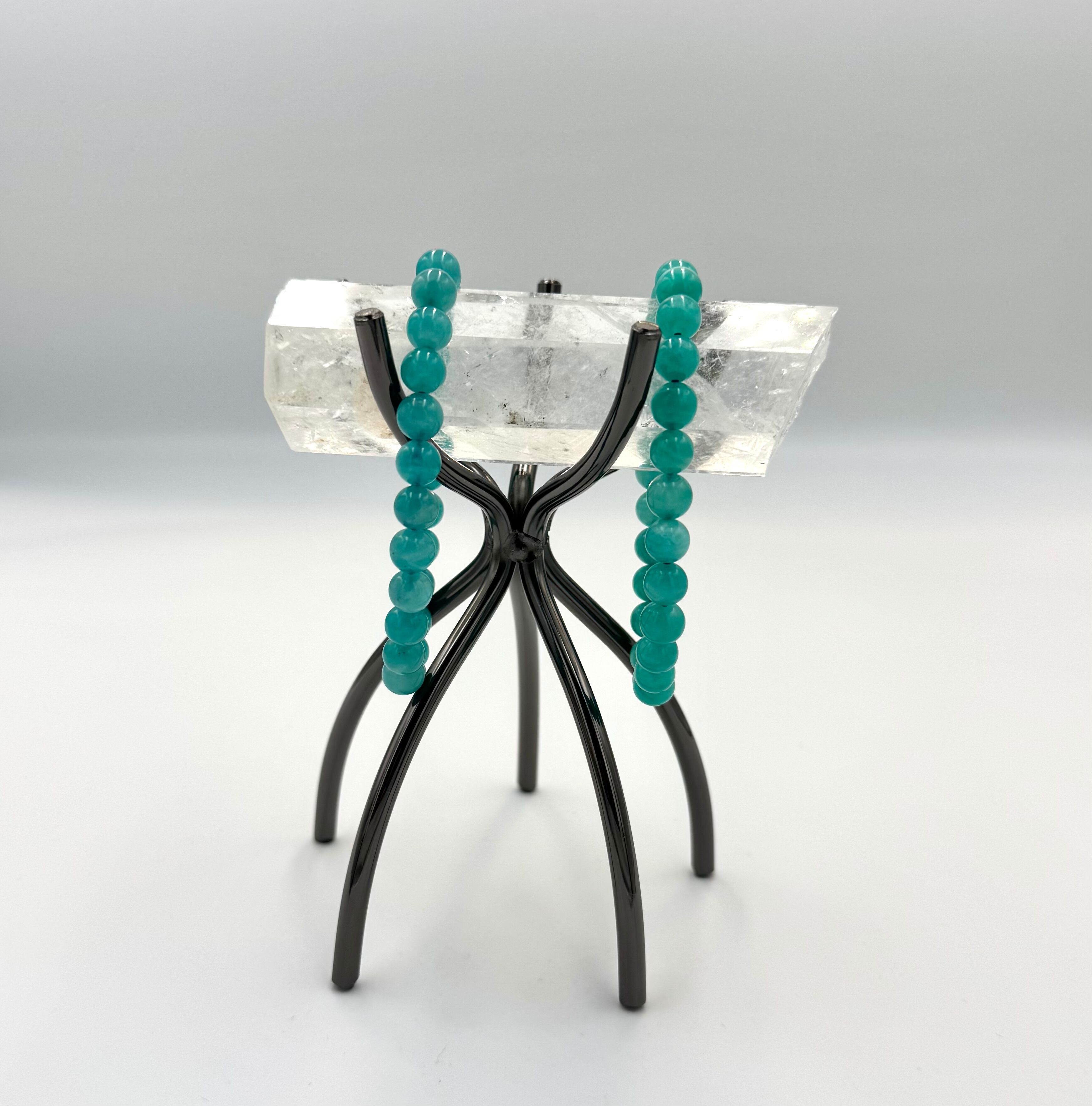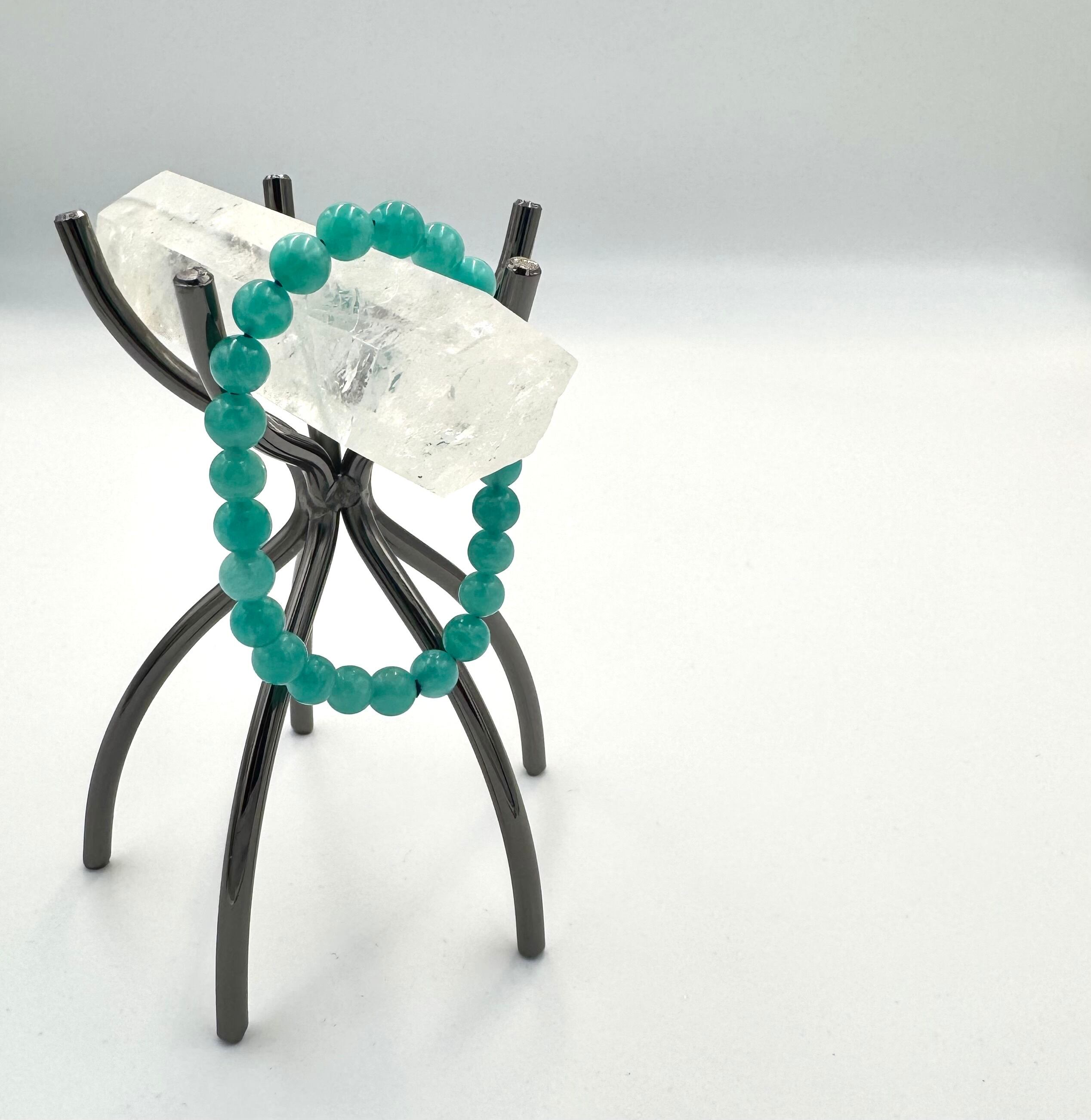 アマゾナイトは、青緑色をした天然石で、「天河石(てんがせき)」という和名があります。フェルスパー(長石)グループに属する鉱物で、マイクロクリンの一種です。
