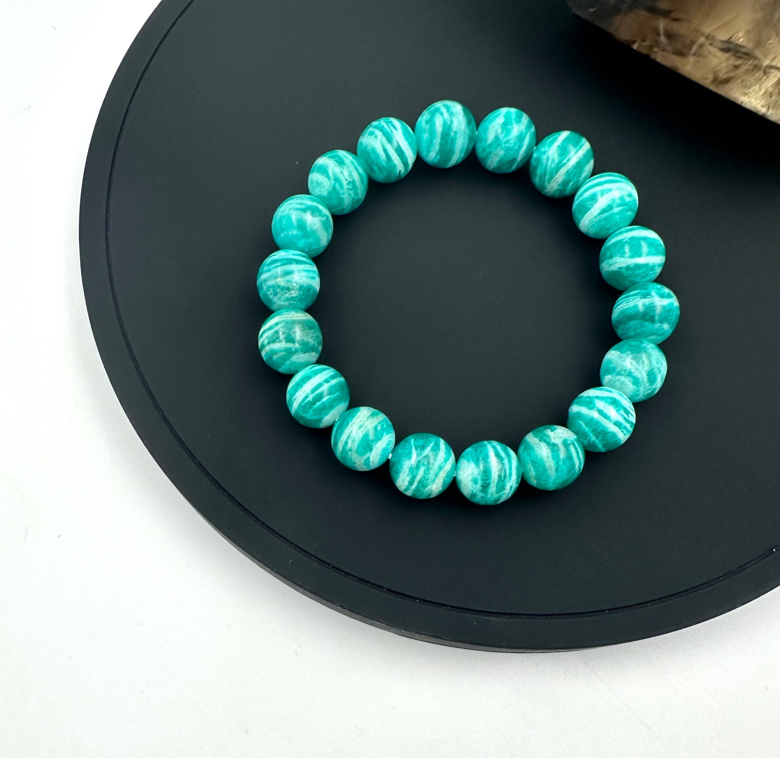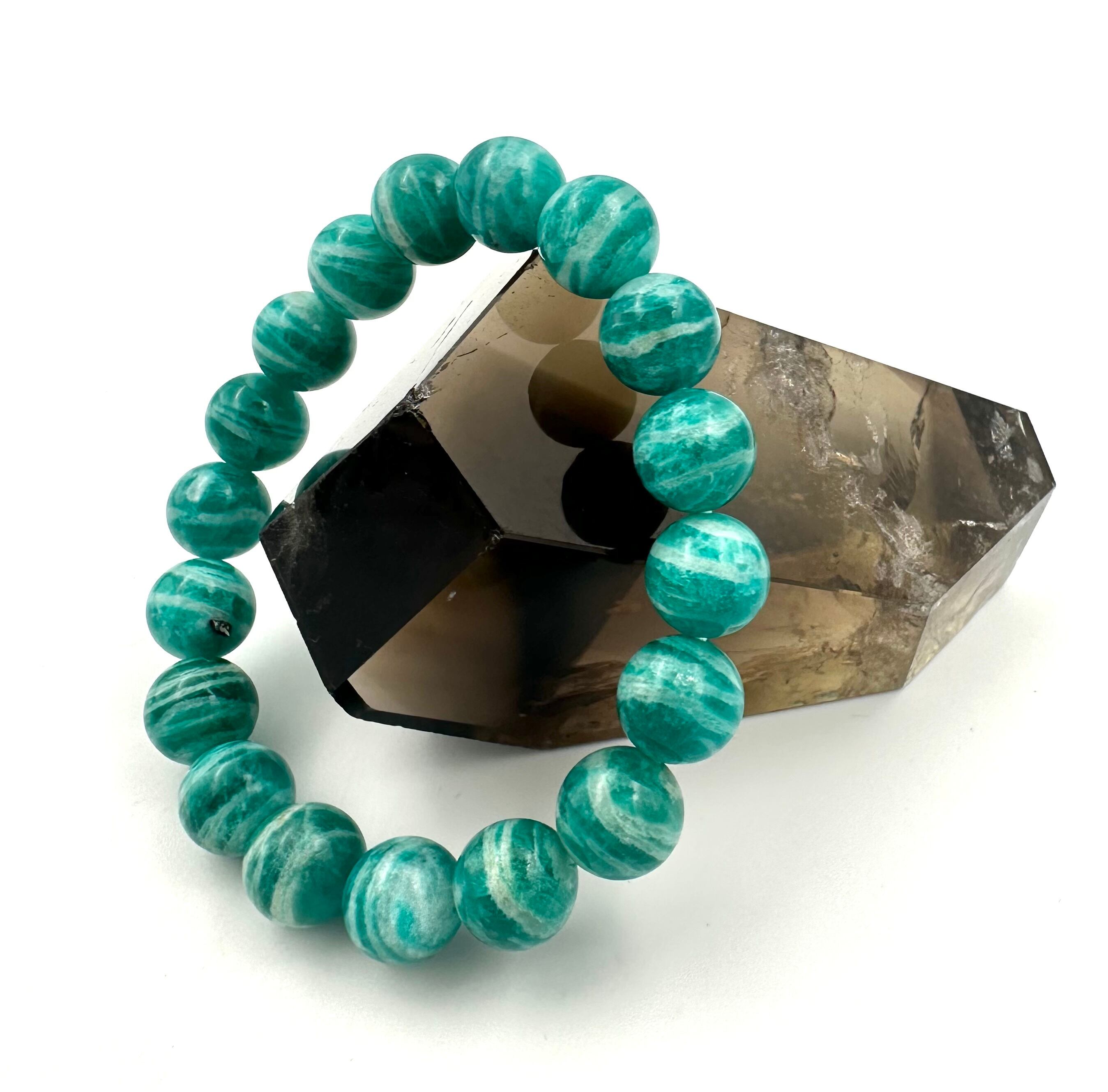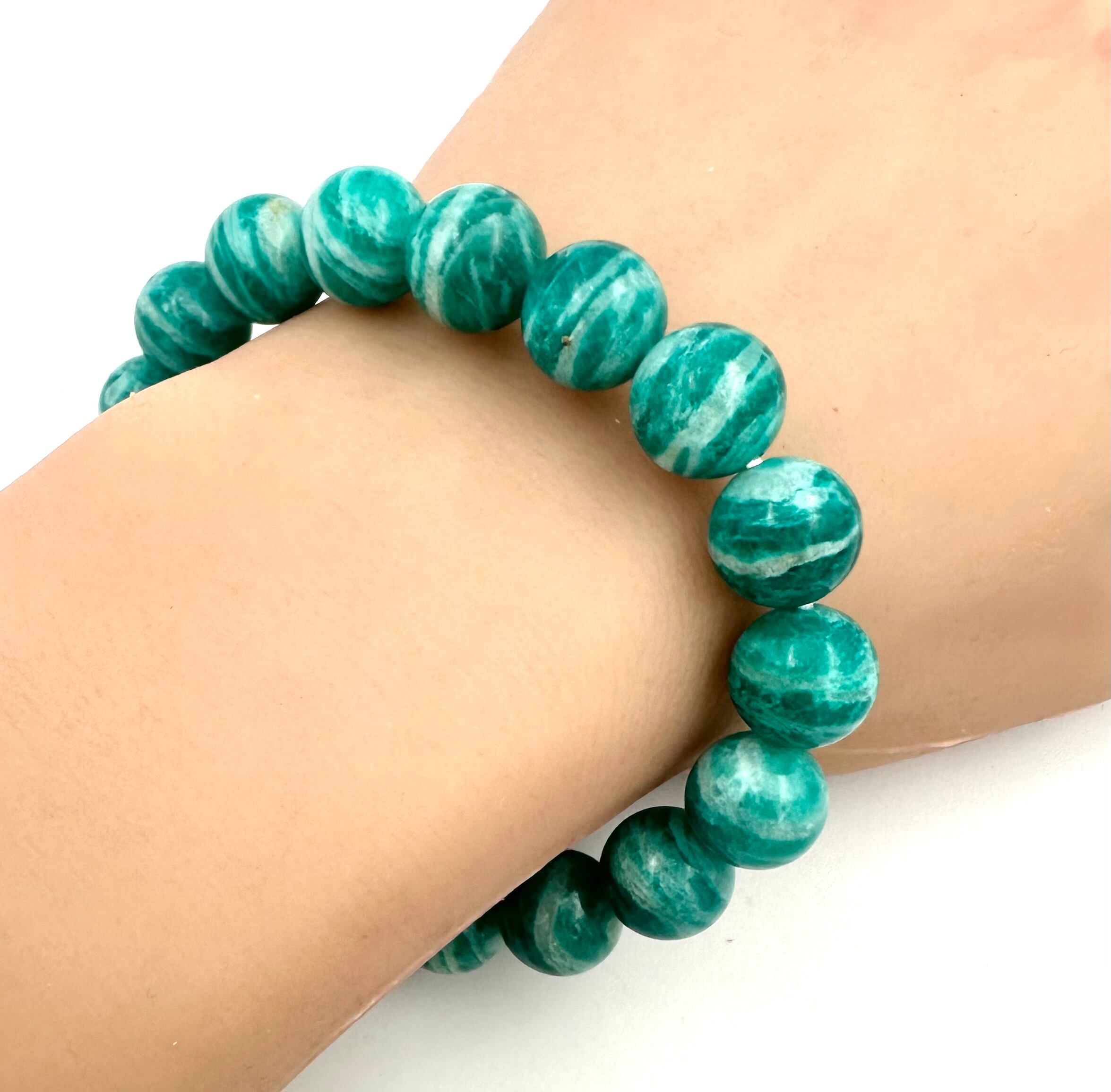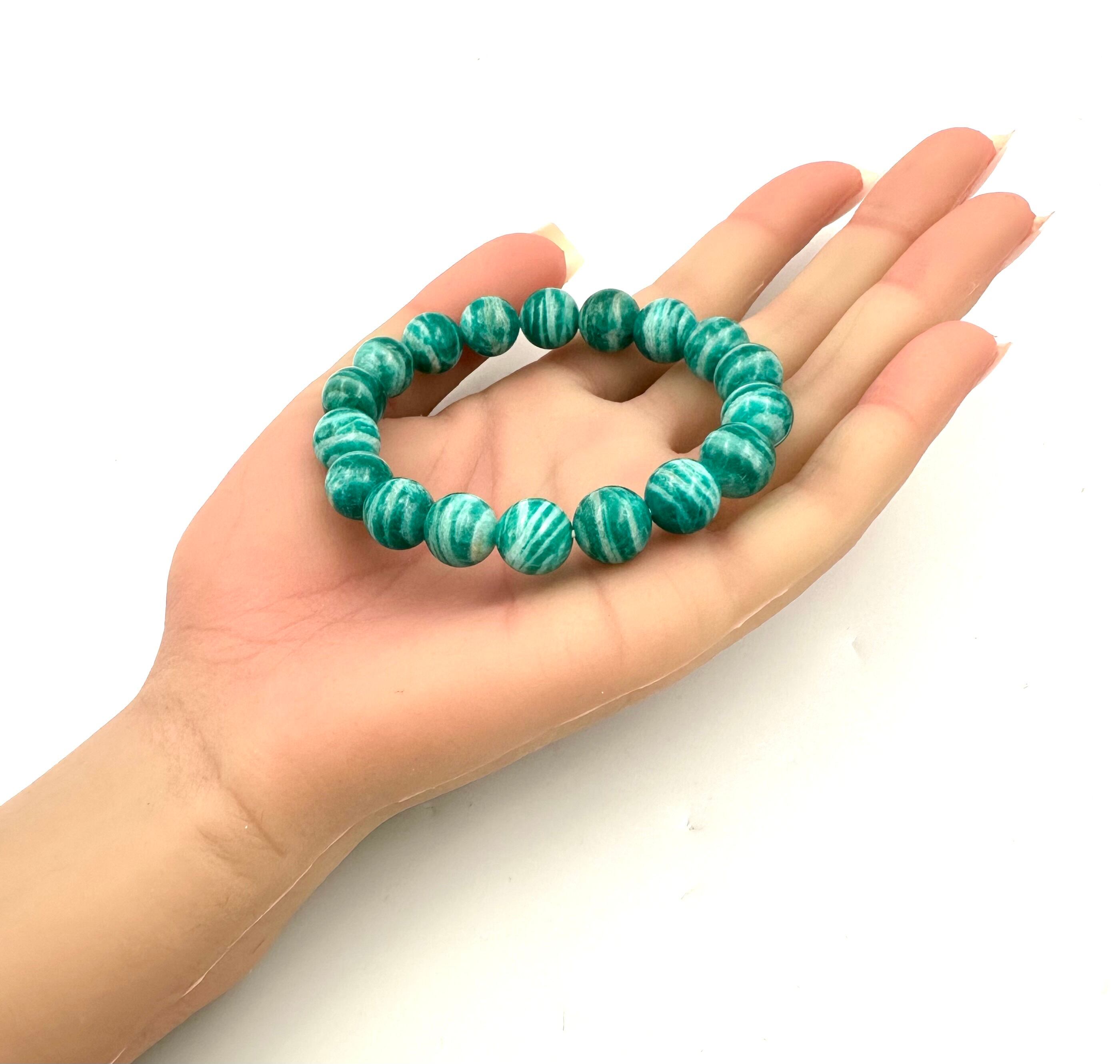 (01252)(鑑別書つき1点のみ)ロシア産アマゾナイト【10.5-11mm】 Amazonite 天河石 ラウンドボール ブレスレット 天然石 パワーストーン