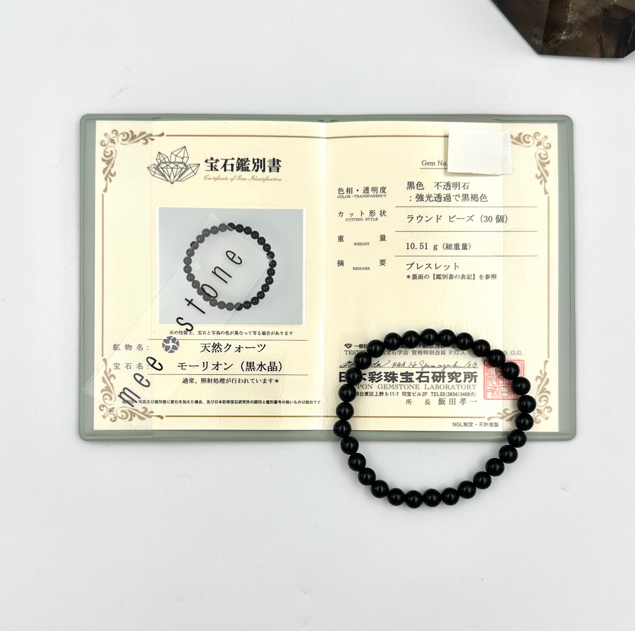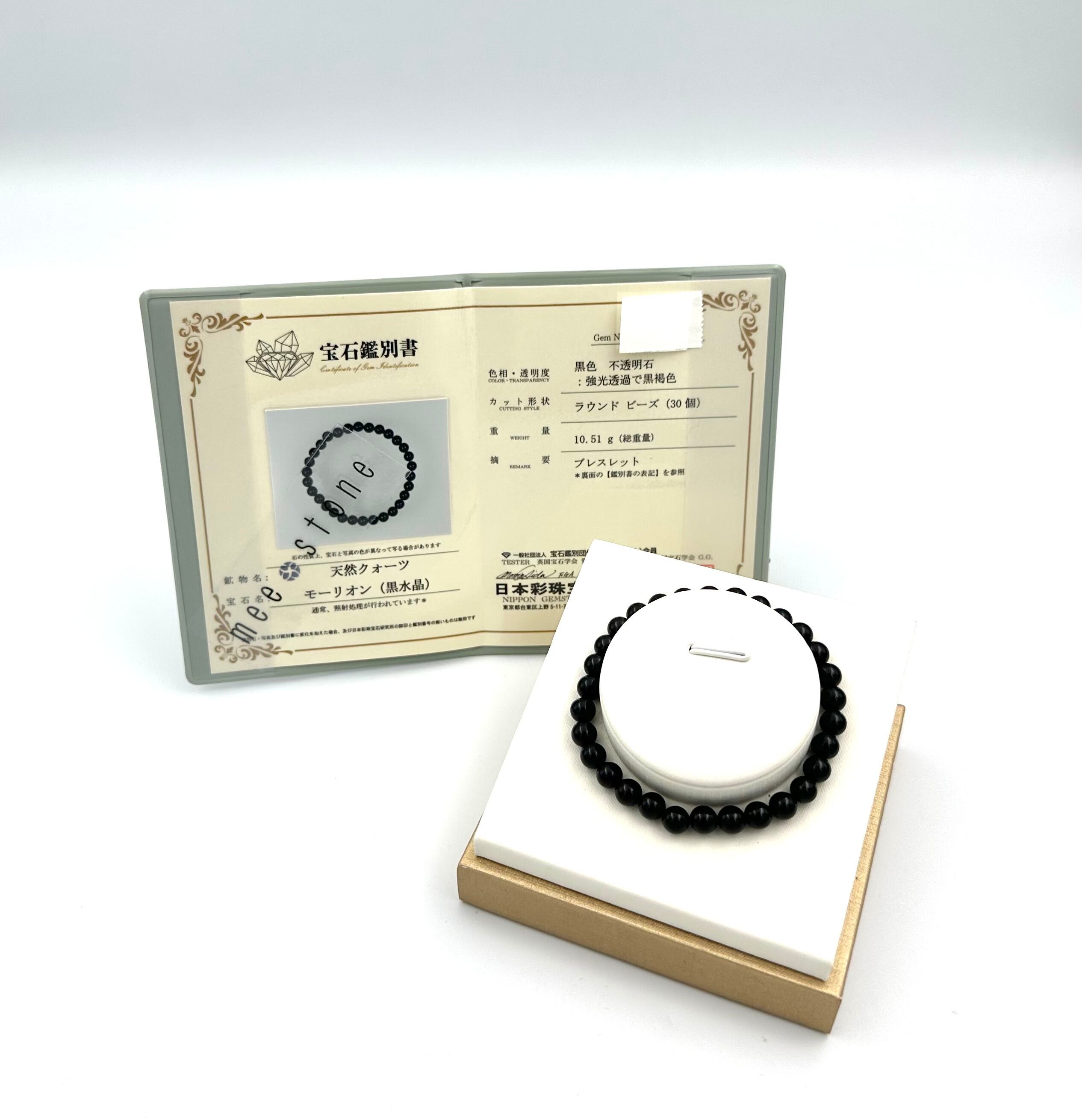 (01236)(鑑別書つき1点のみ)チベット産モリオン【6mm】Morion 黒水晶 ラウンドカット 魔除け 厄除け 天然石ブレスレット パワーストーン